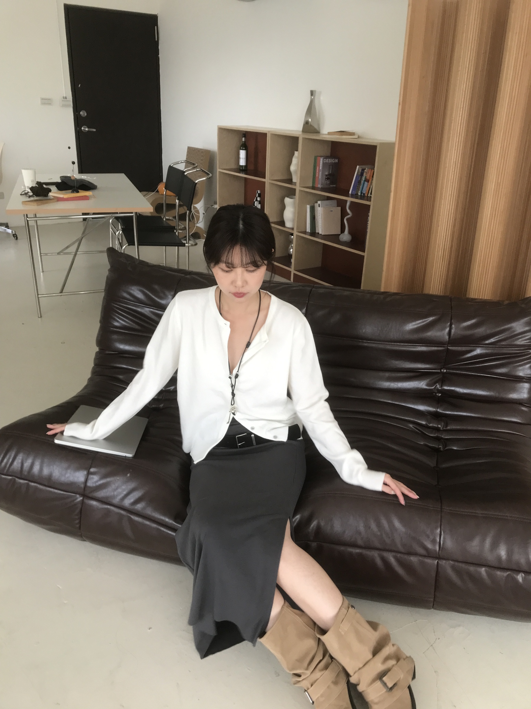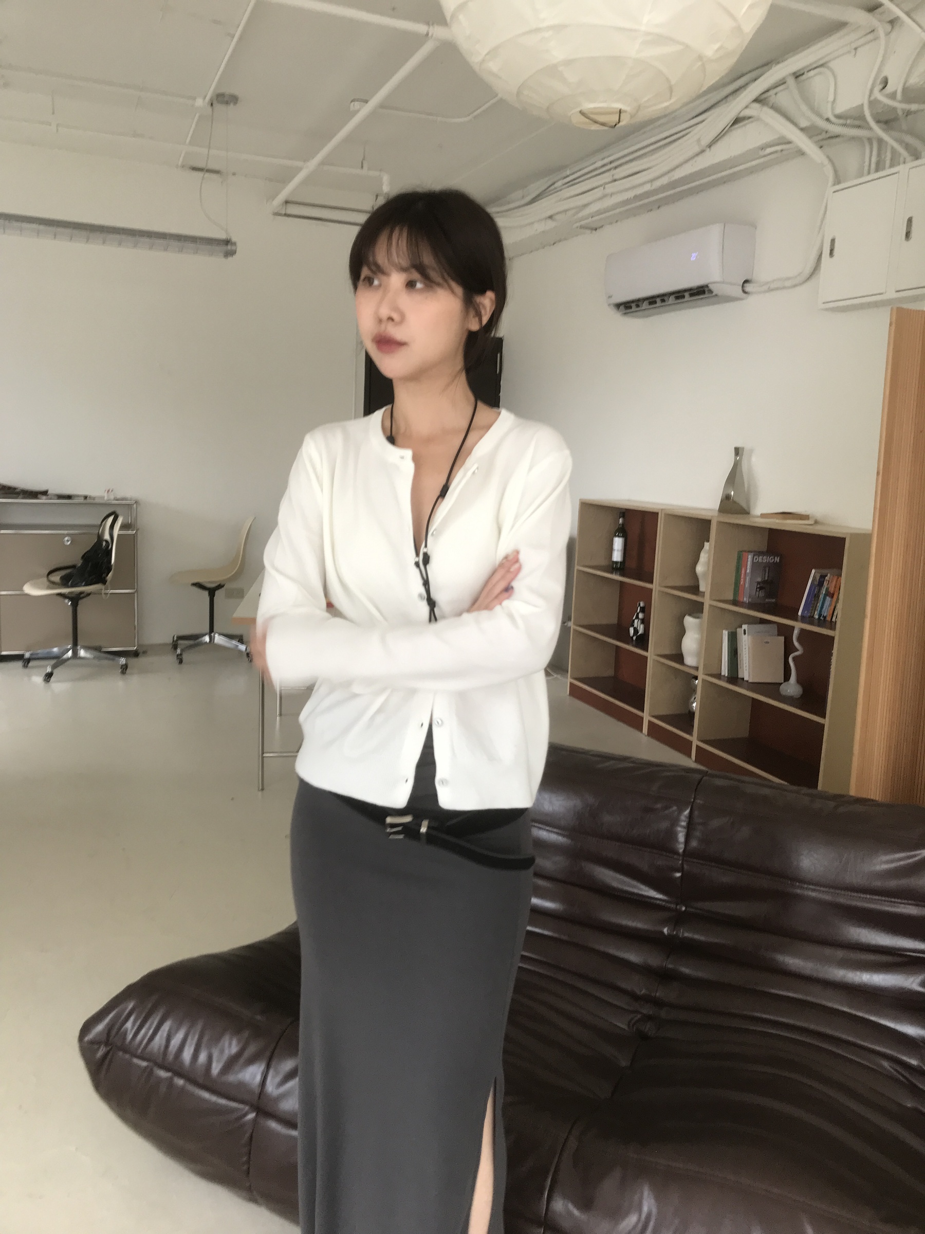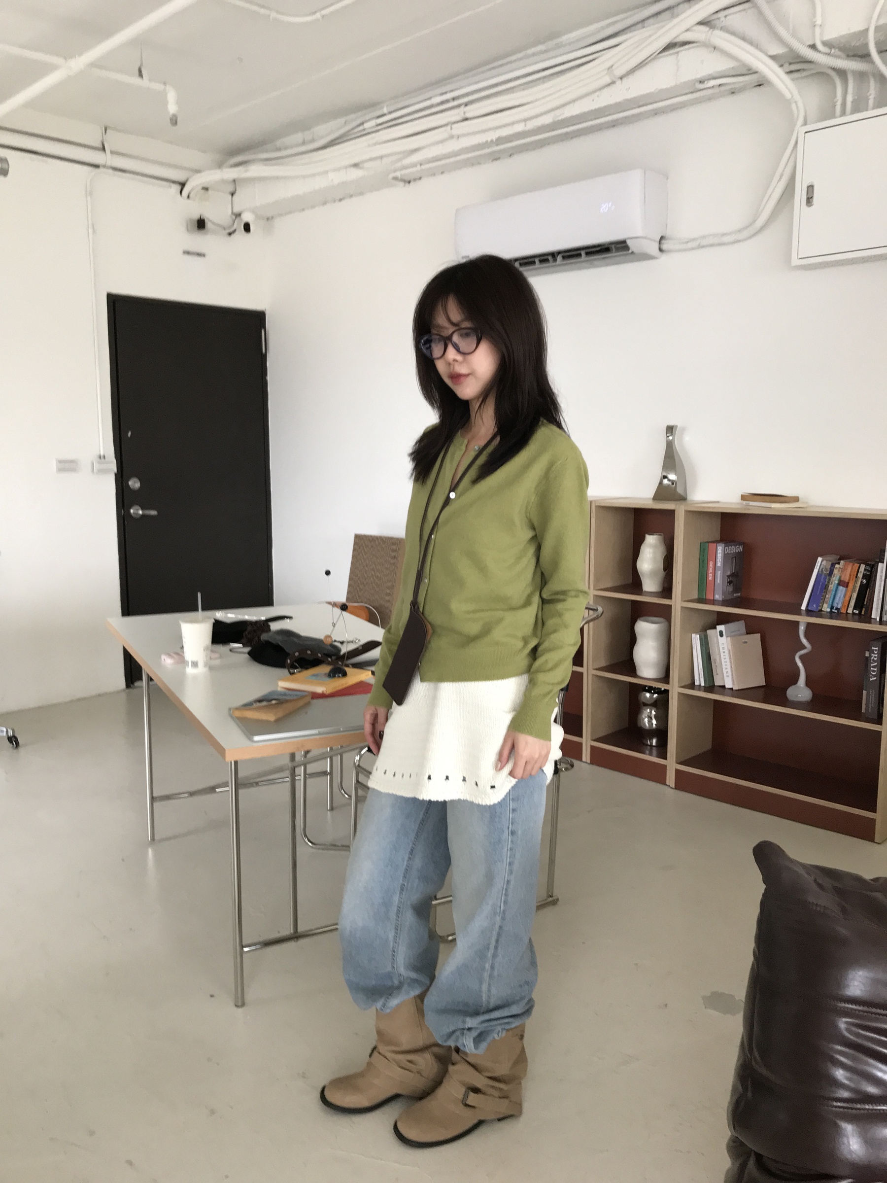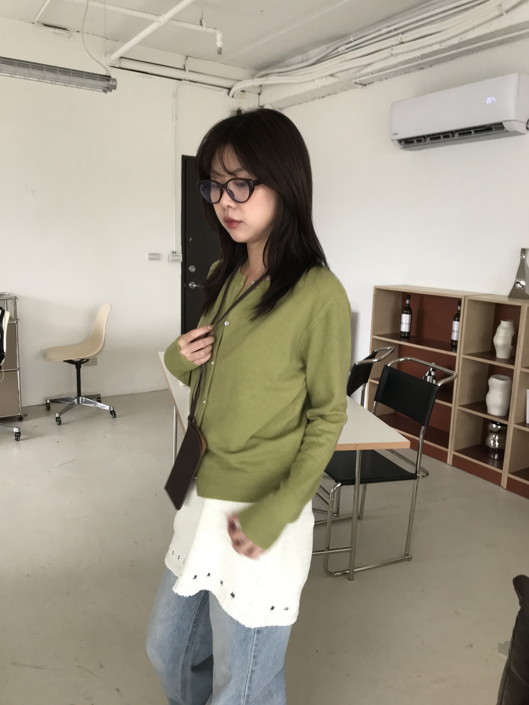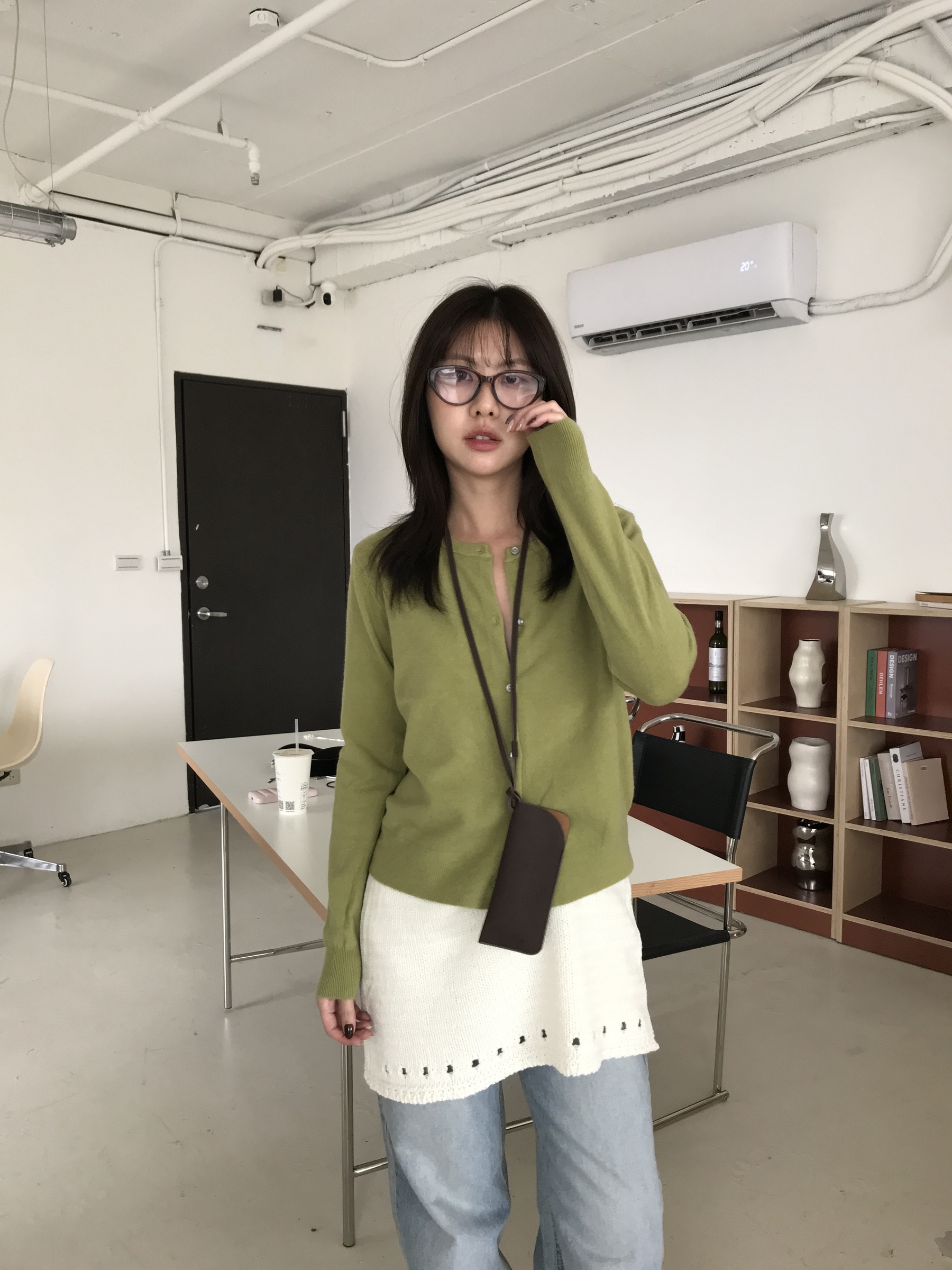 ROUND 排扣針織外套 (酪白/萊姆綠/淺灰/嫣紅/深灰)