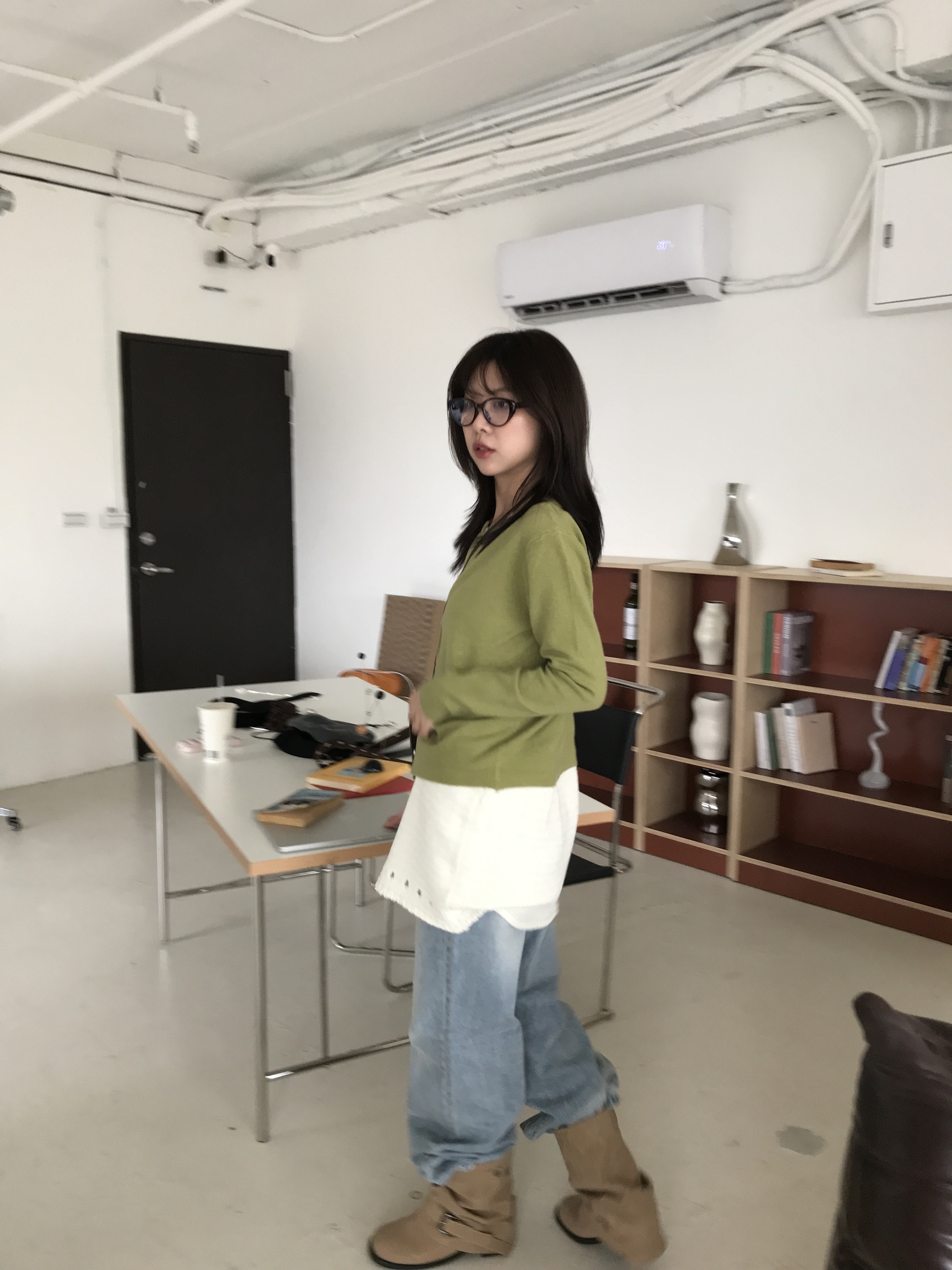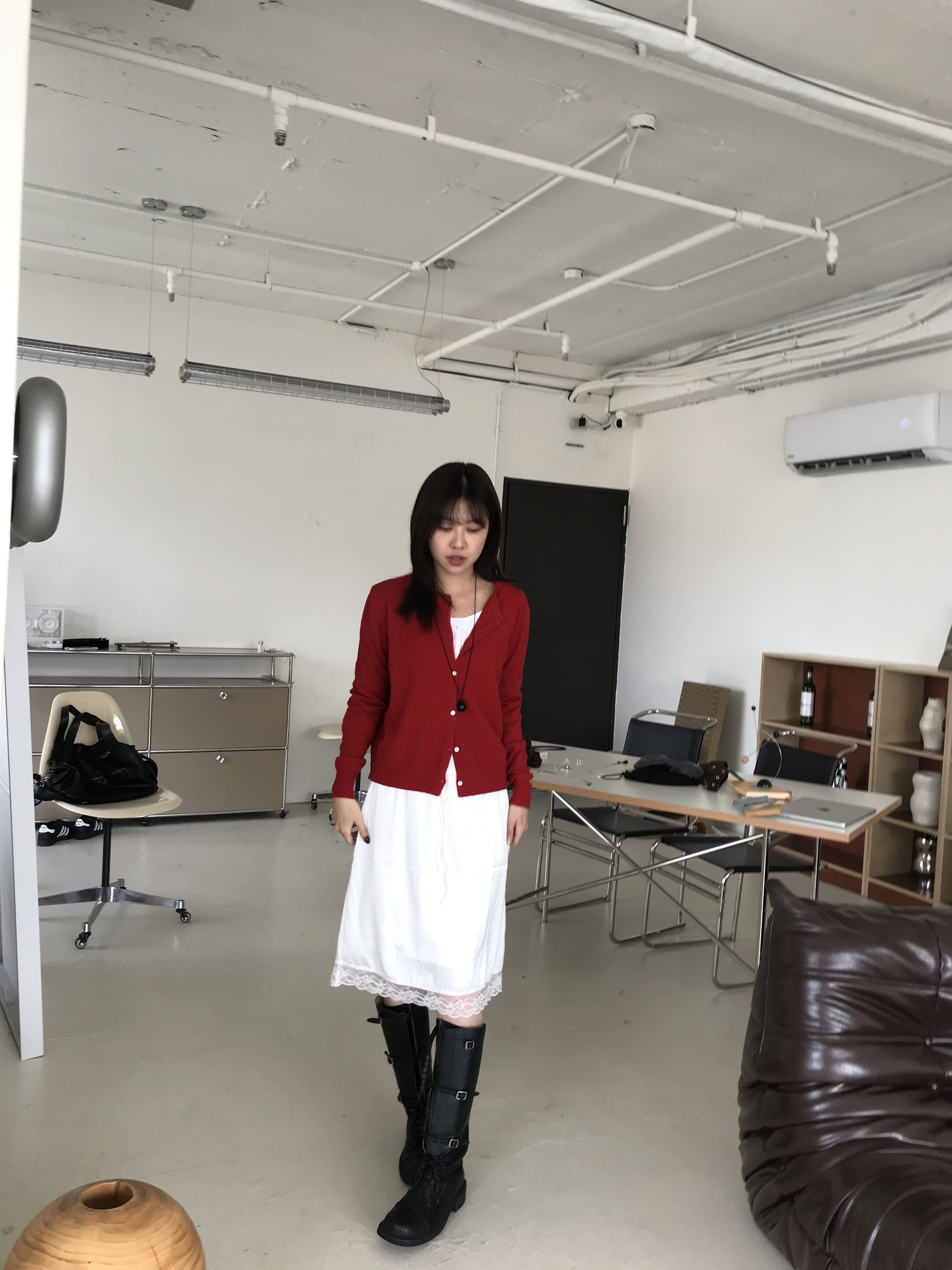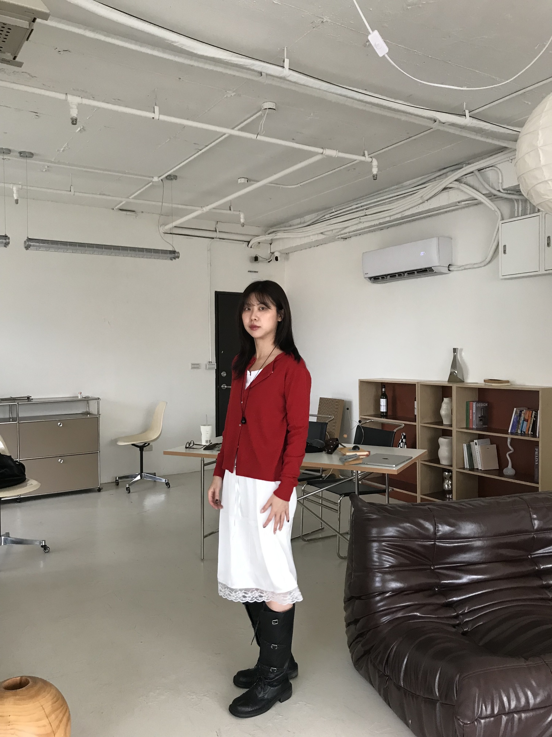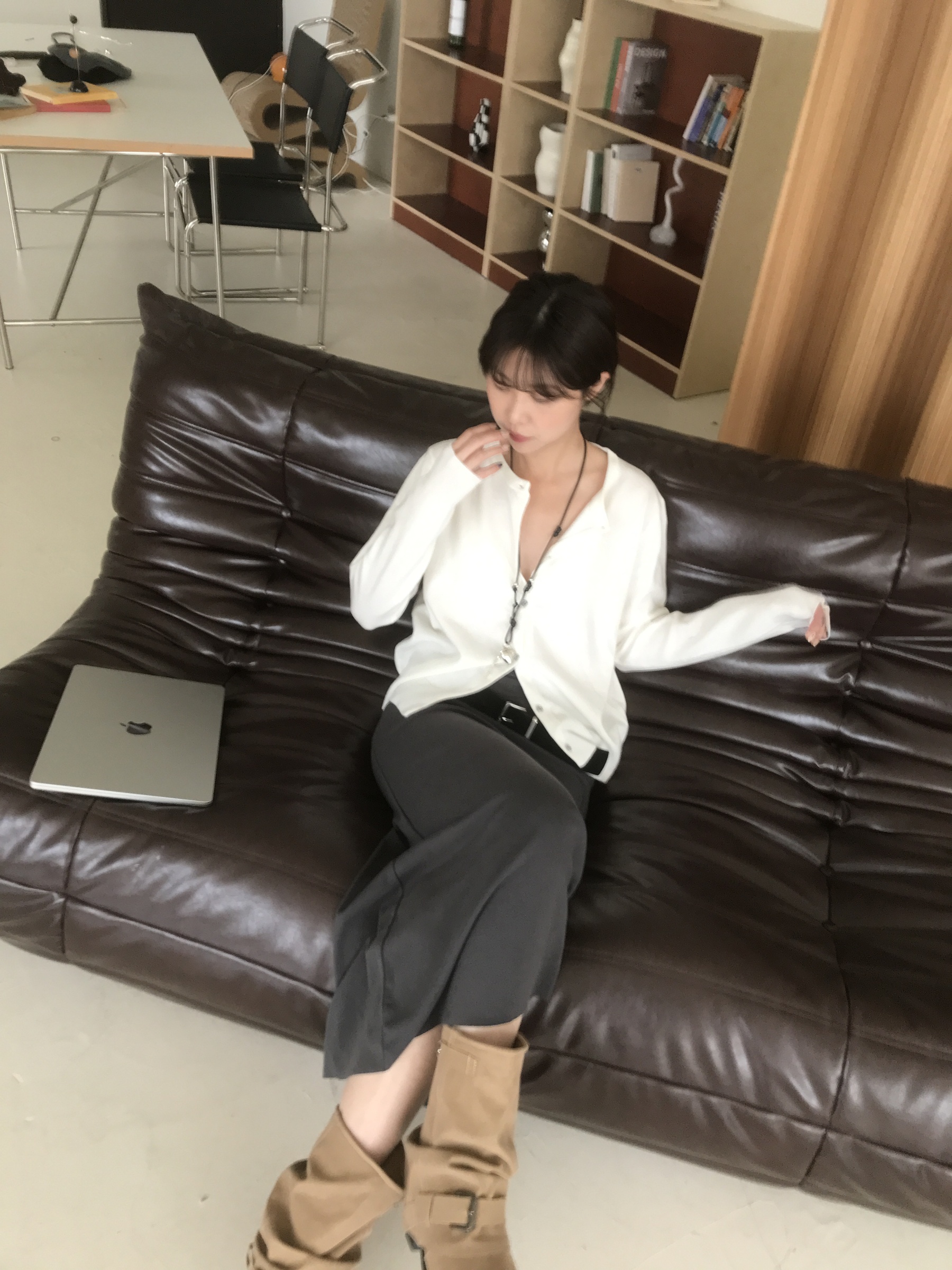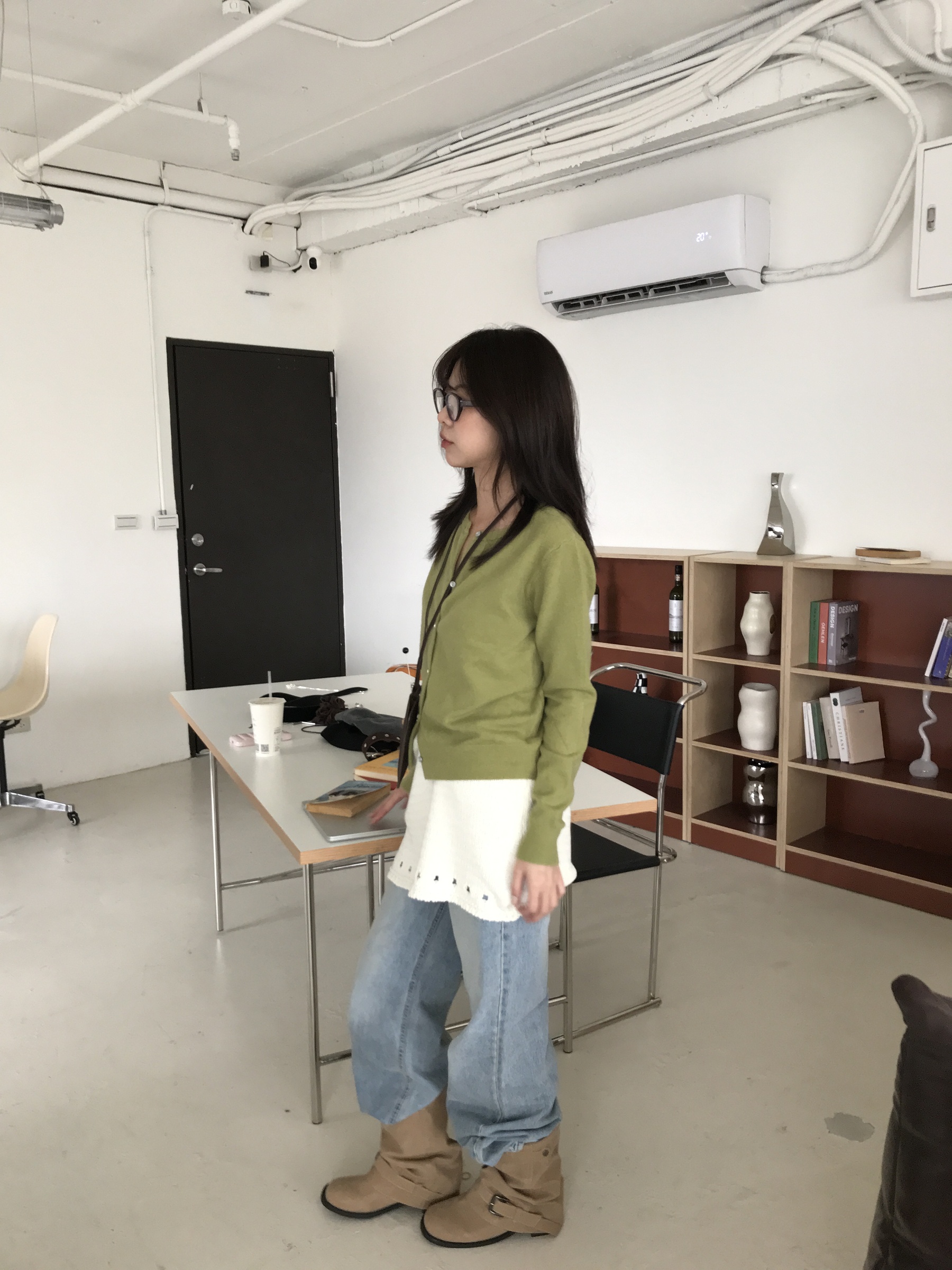 ROUND 排扣針織外套 (酪白/萊姆綠/淺灰/嫣紅/深灰)