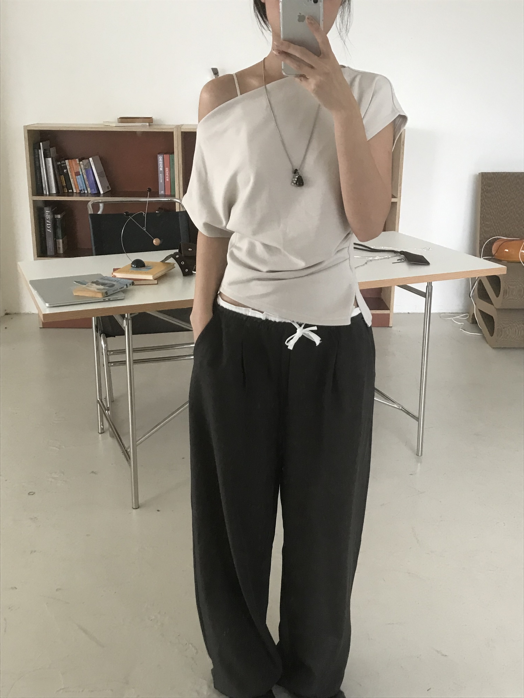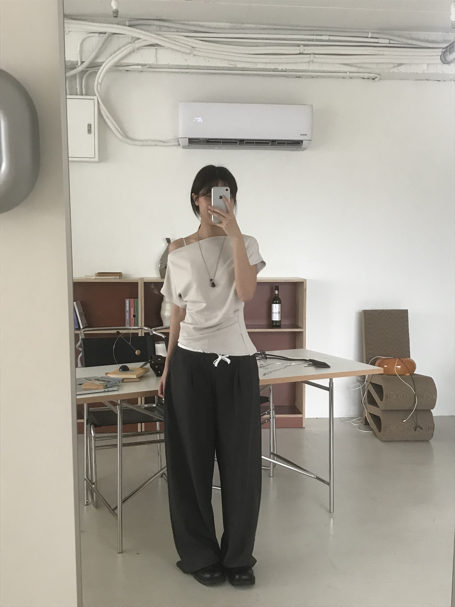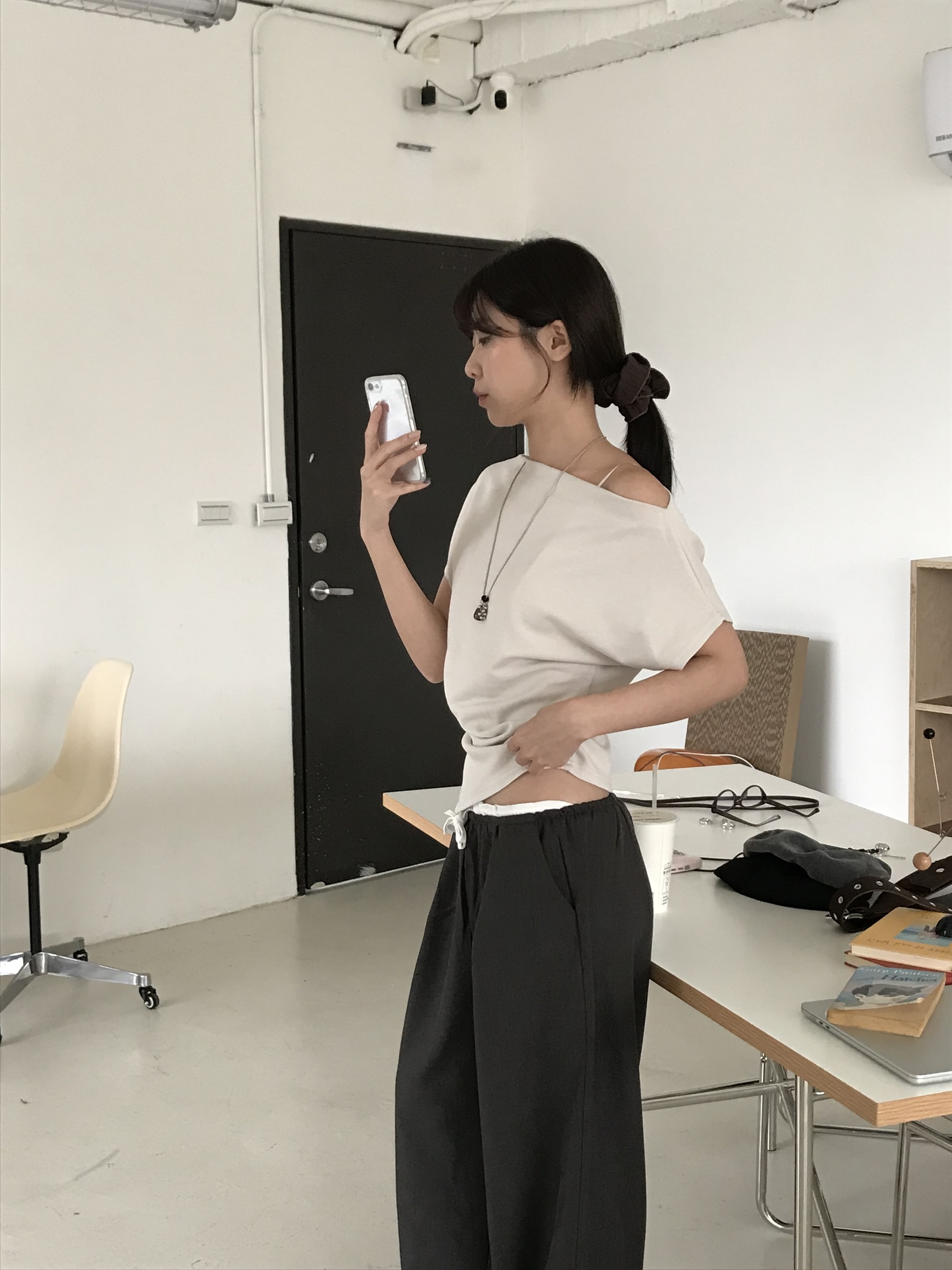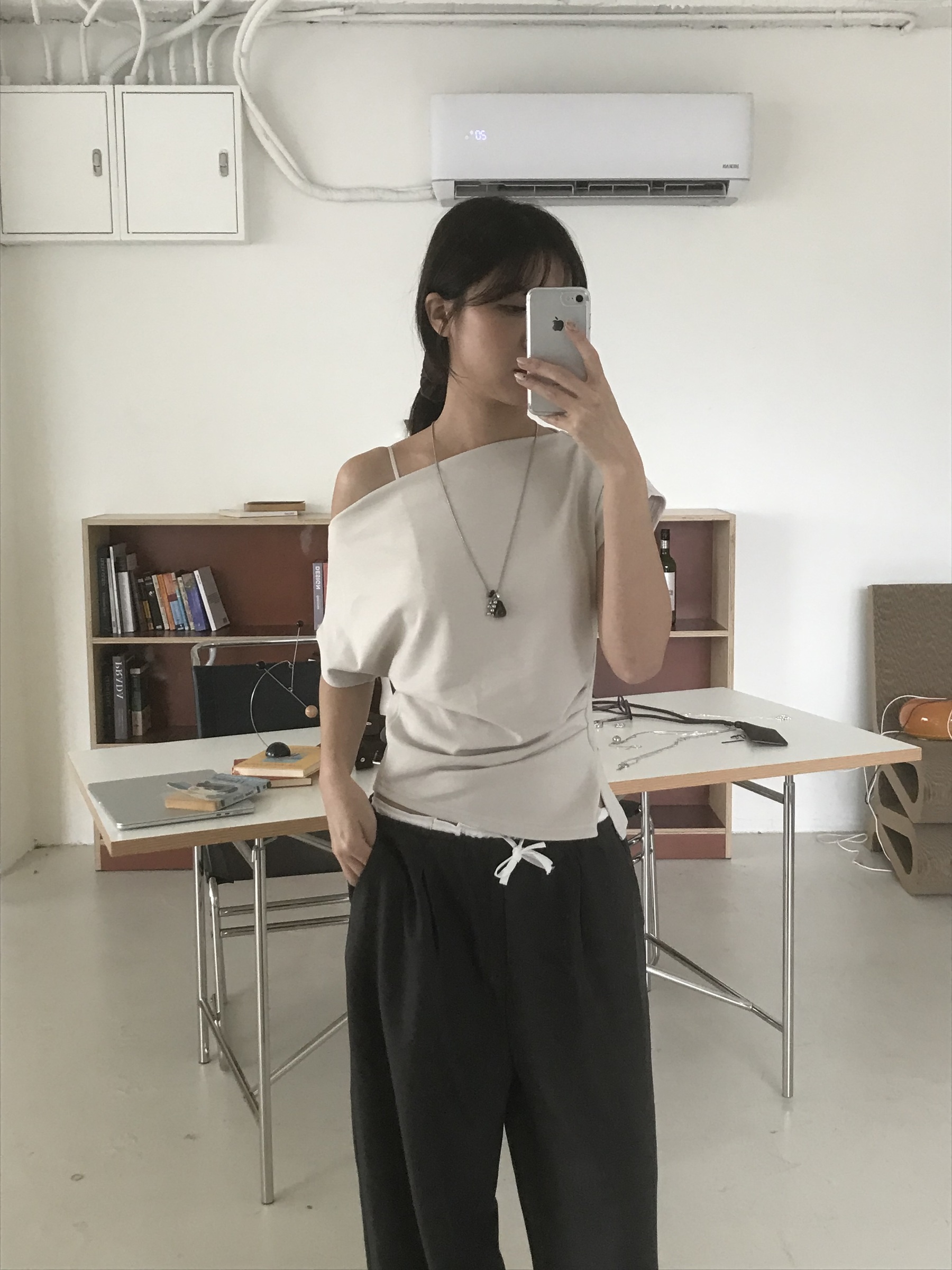 微磅斜領抓皺上衣 (米杏/深棕/黑)