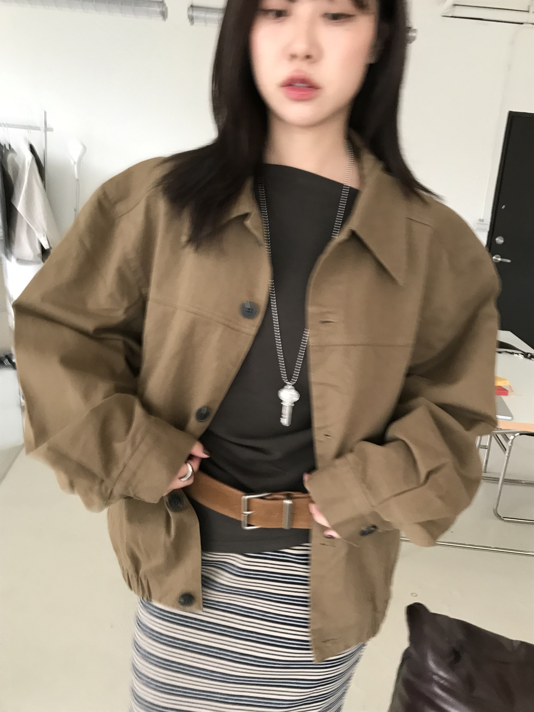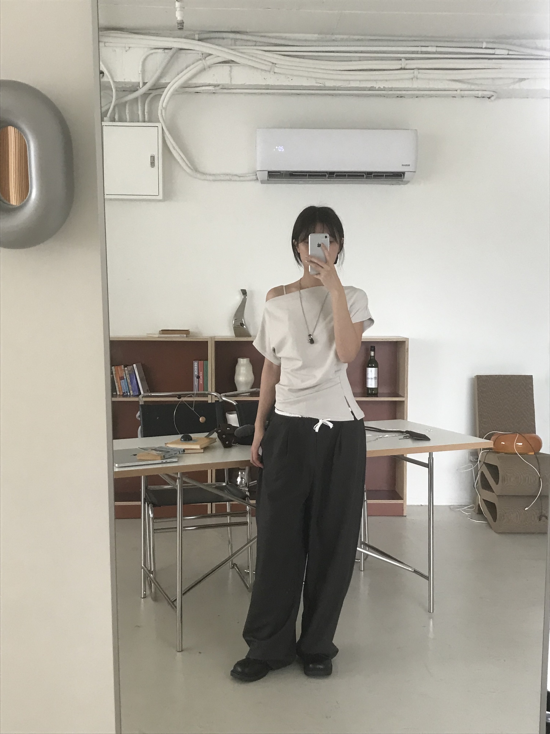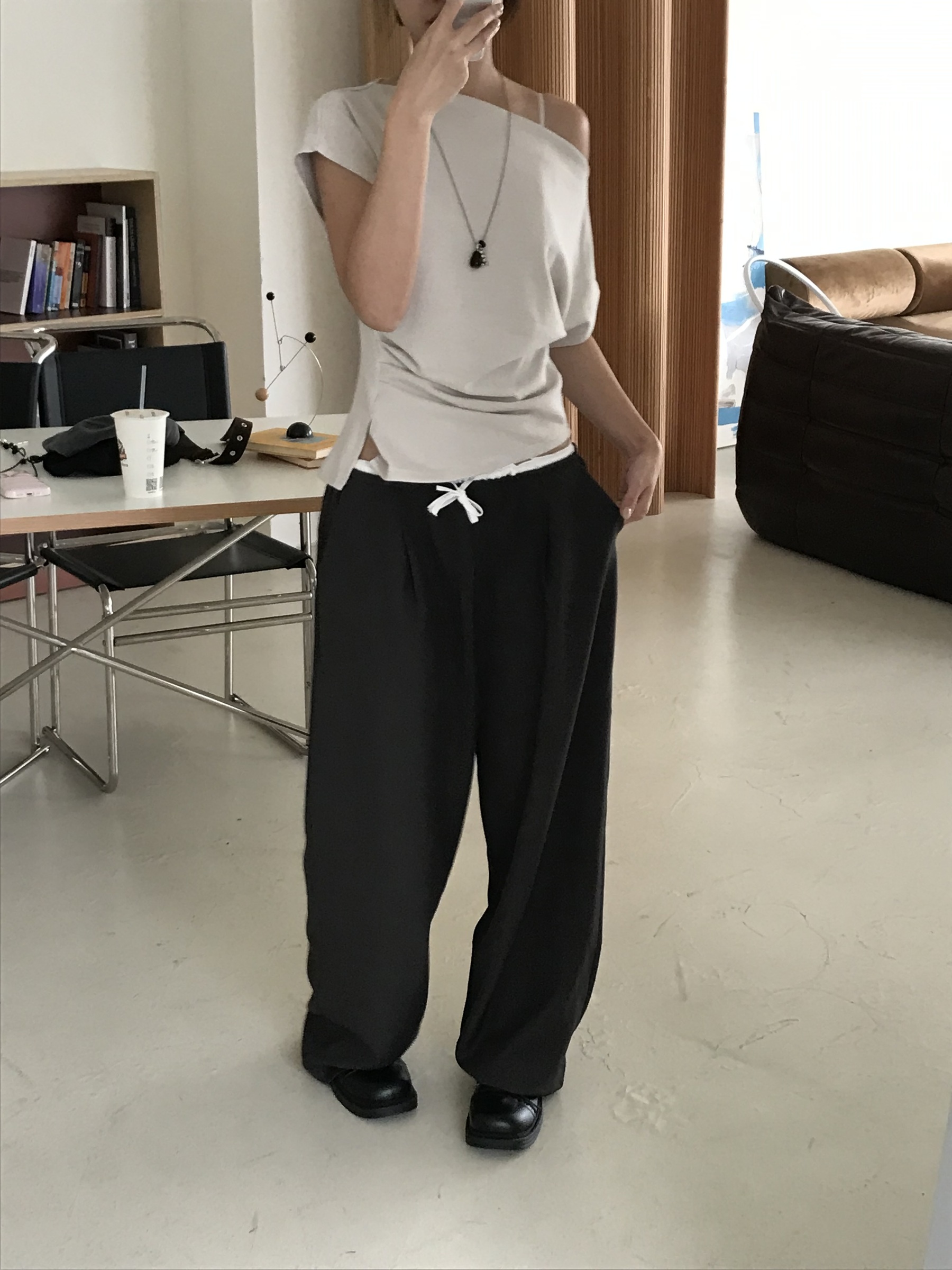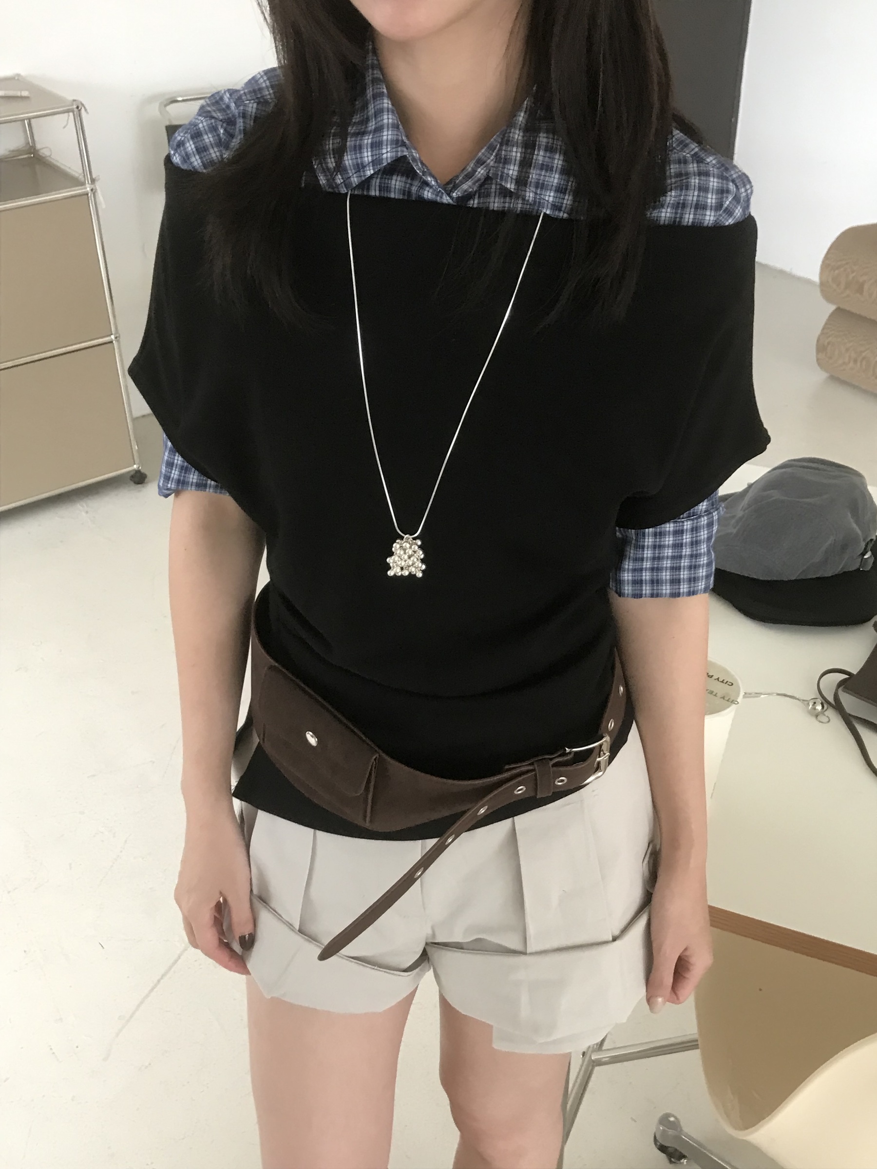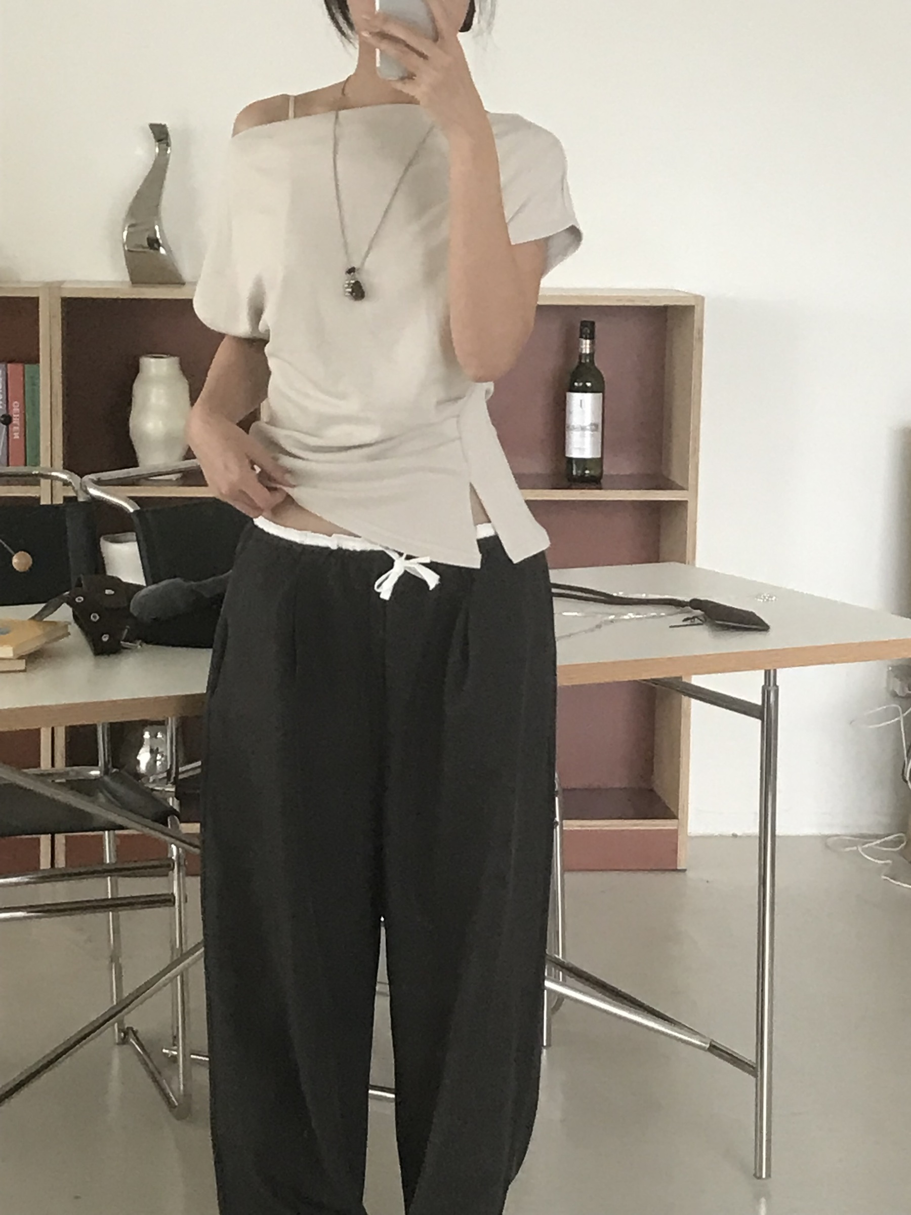 微磅斜領抓皺上衣 (米杏/深棕/黑)