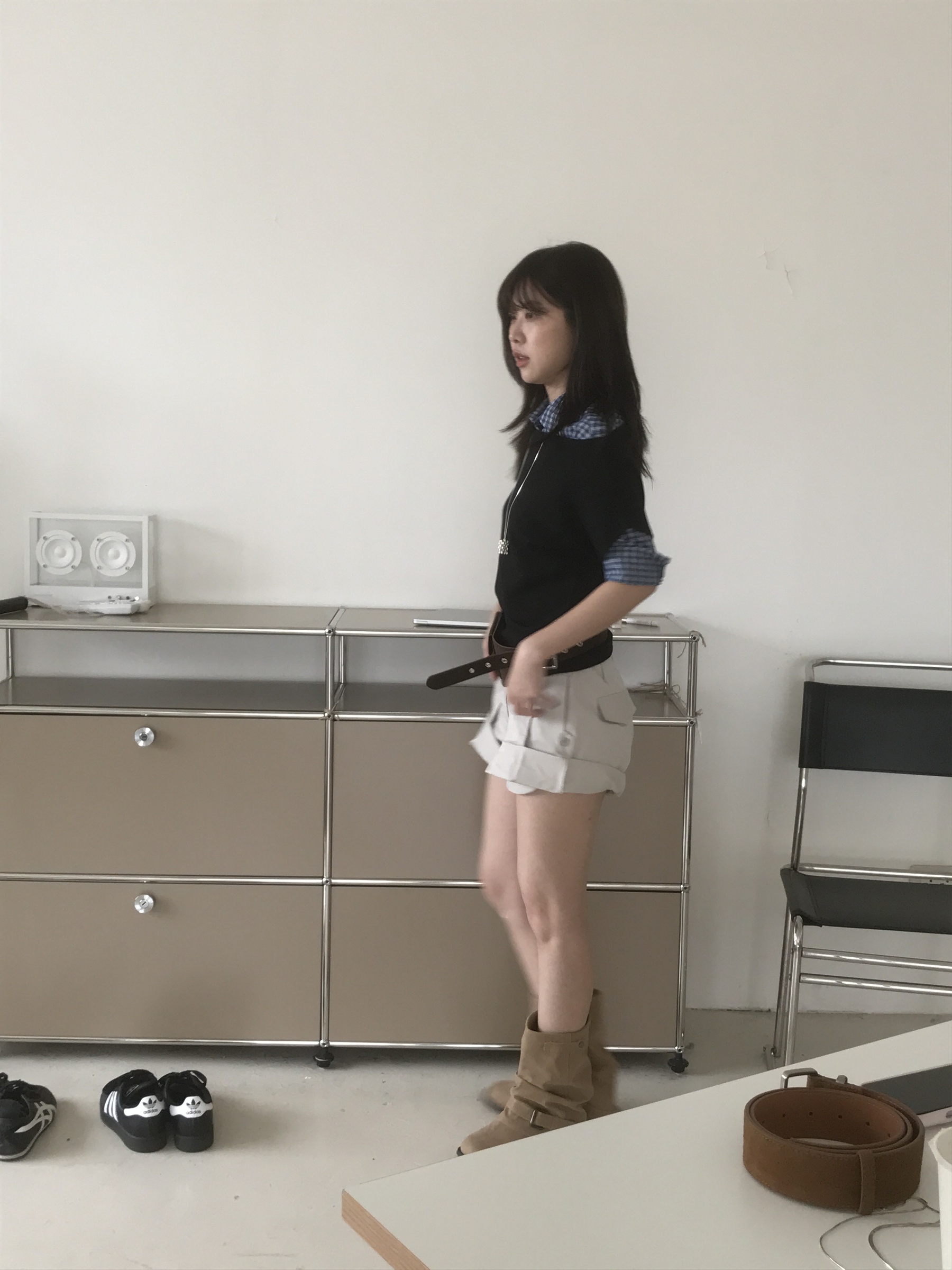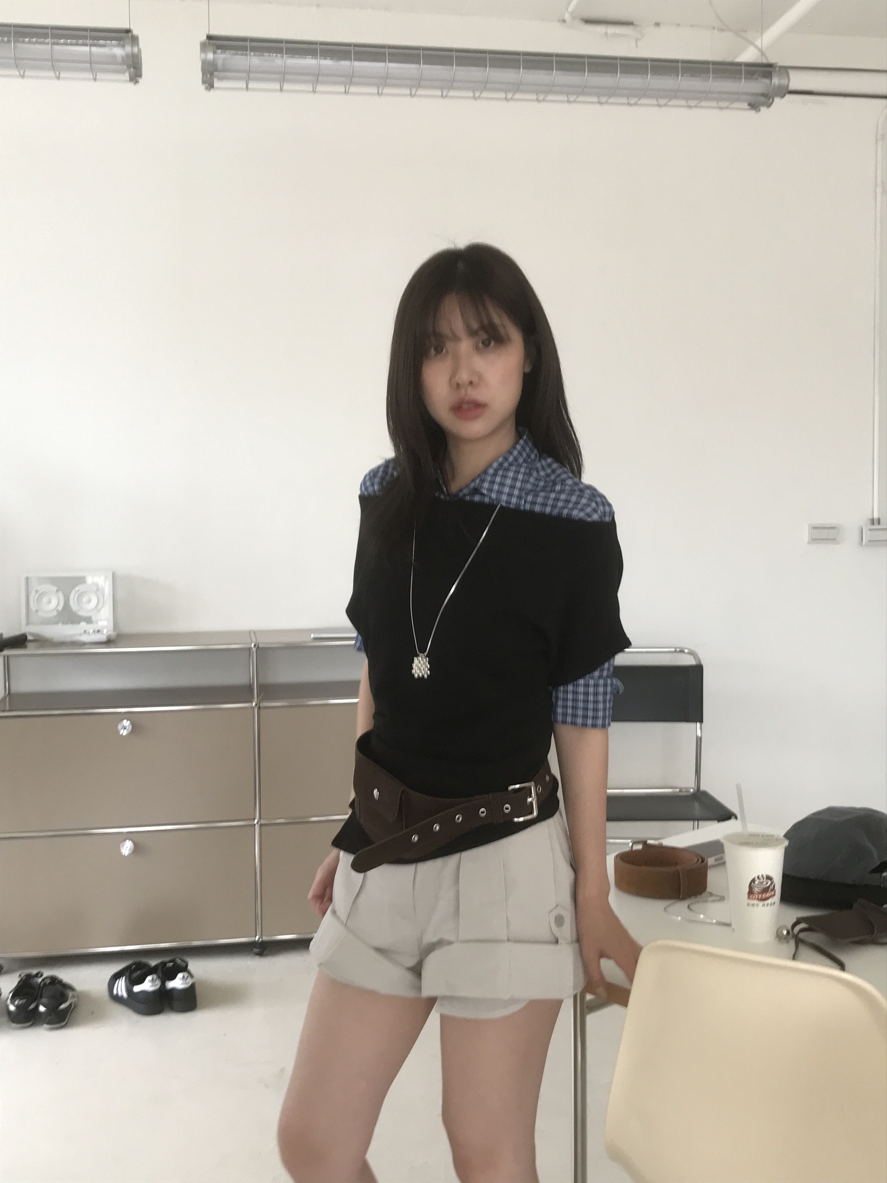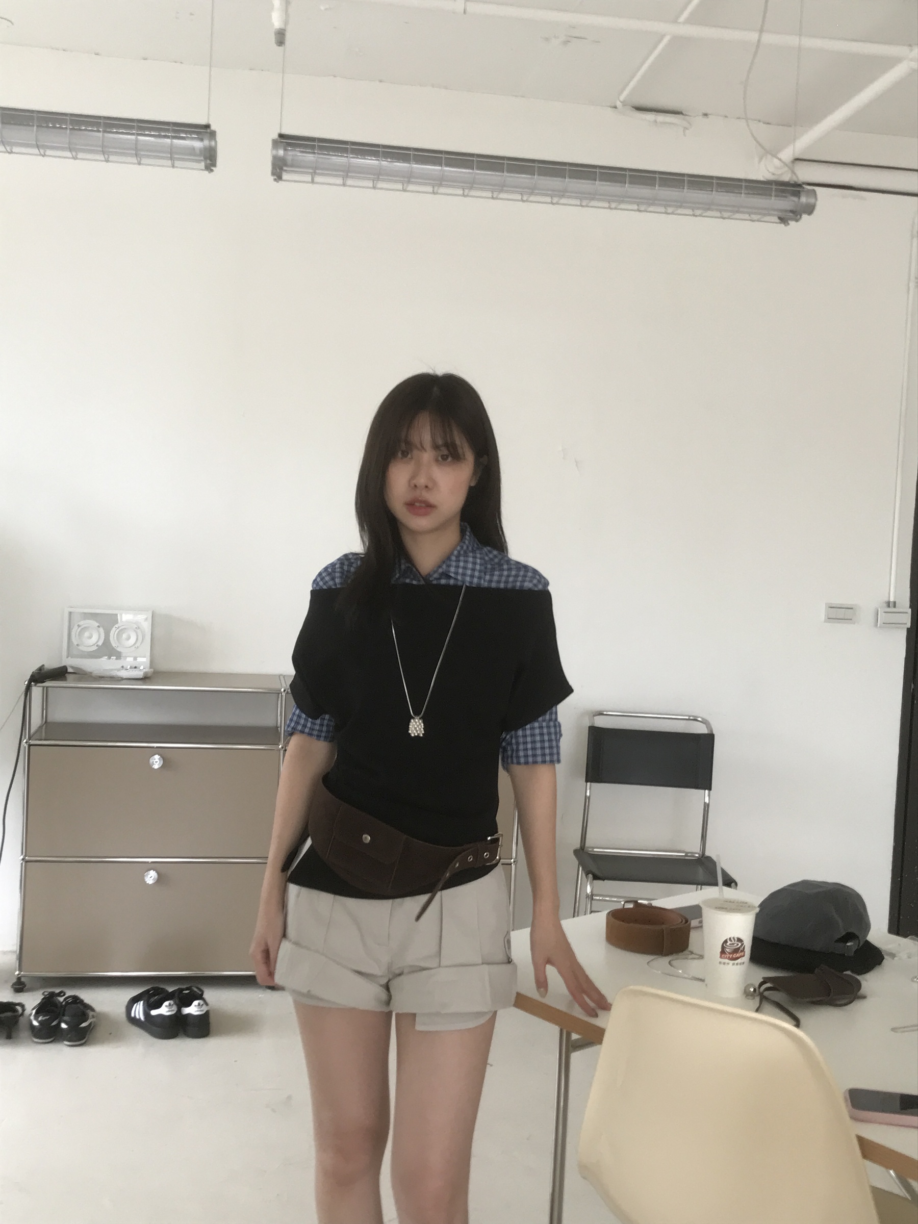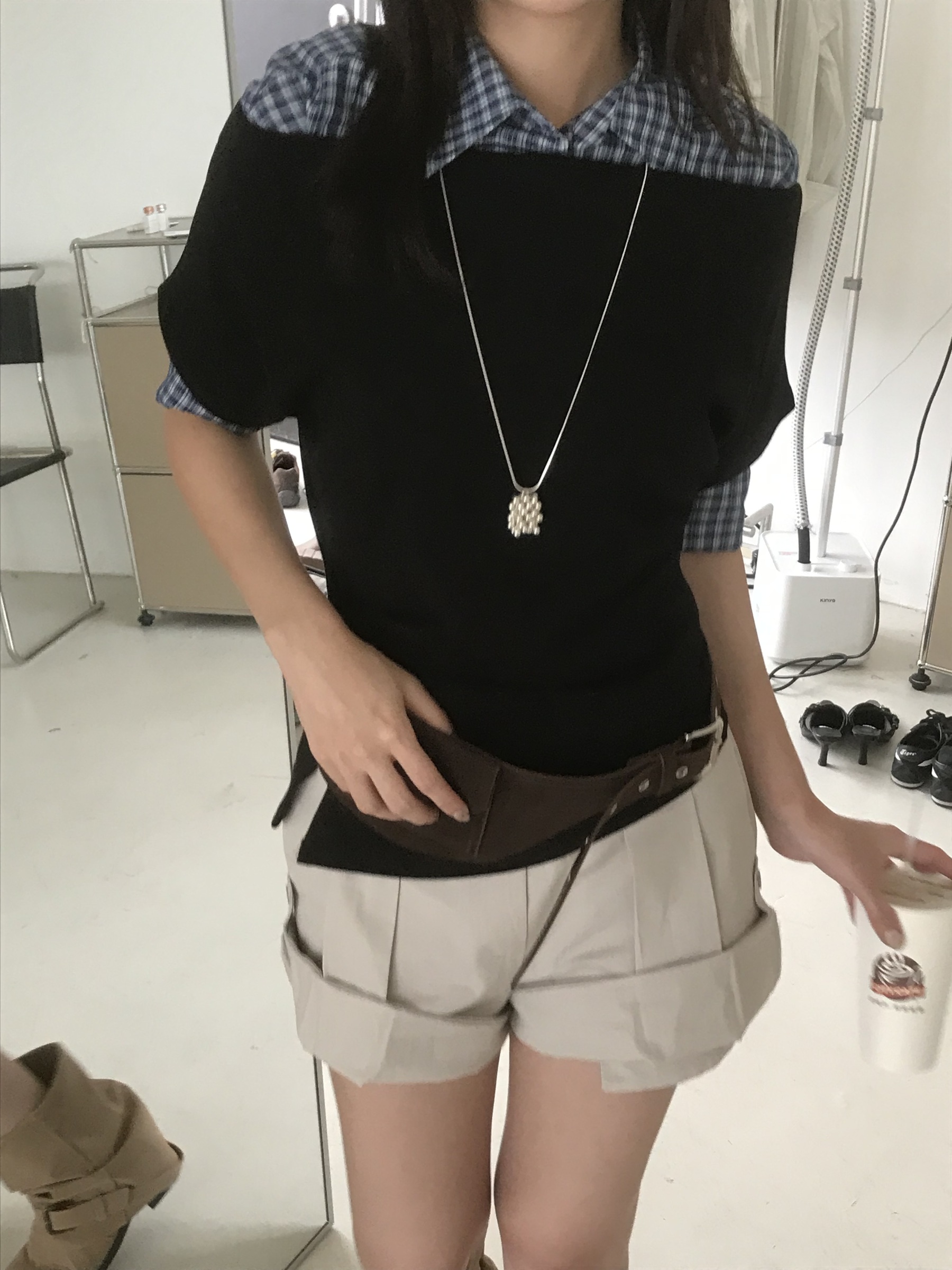 微磅斜領抓皺上衣 (米杏/深棕/黑)