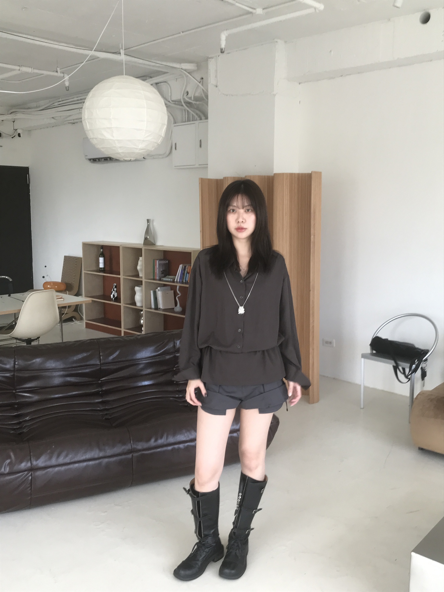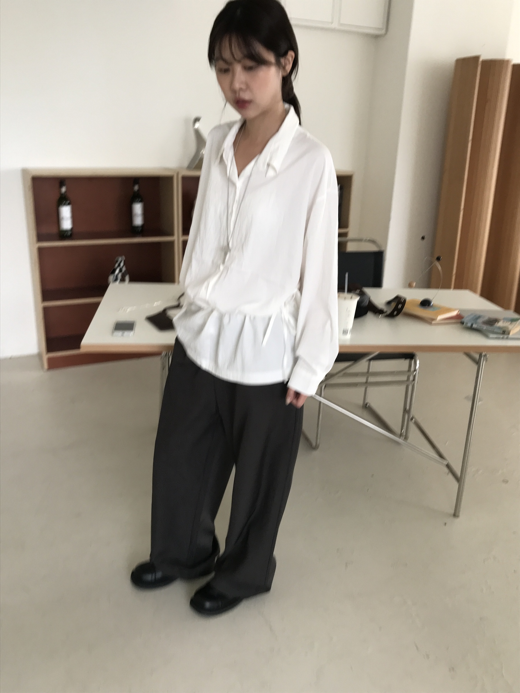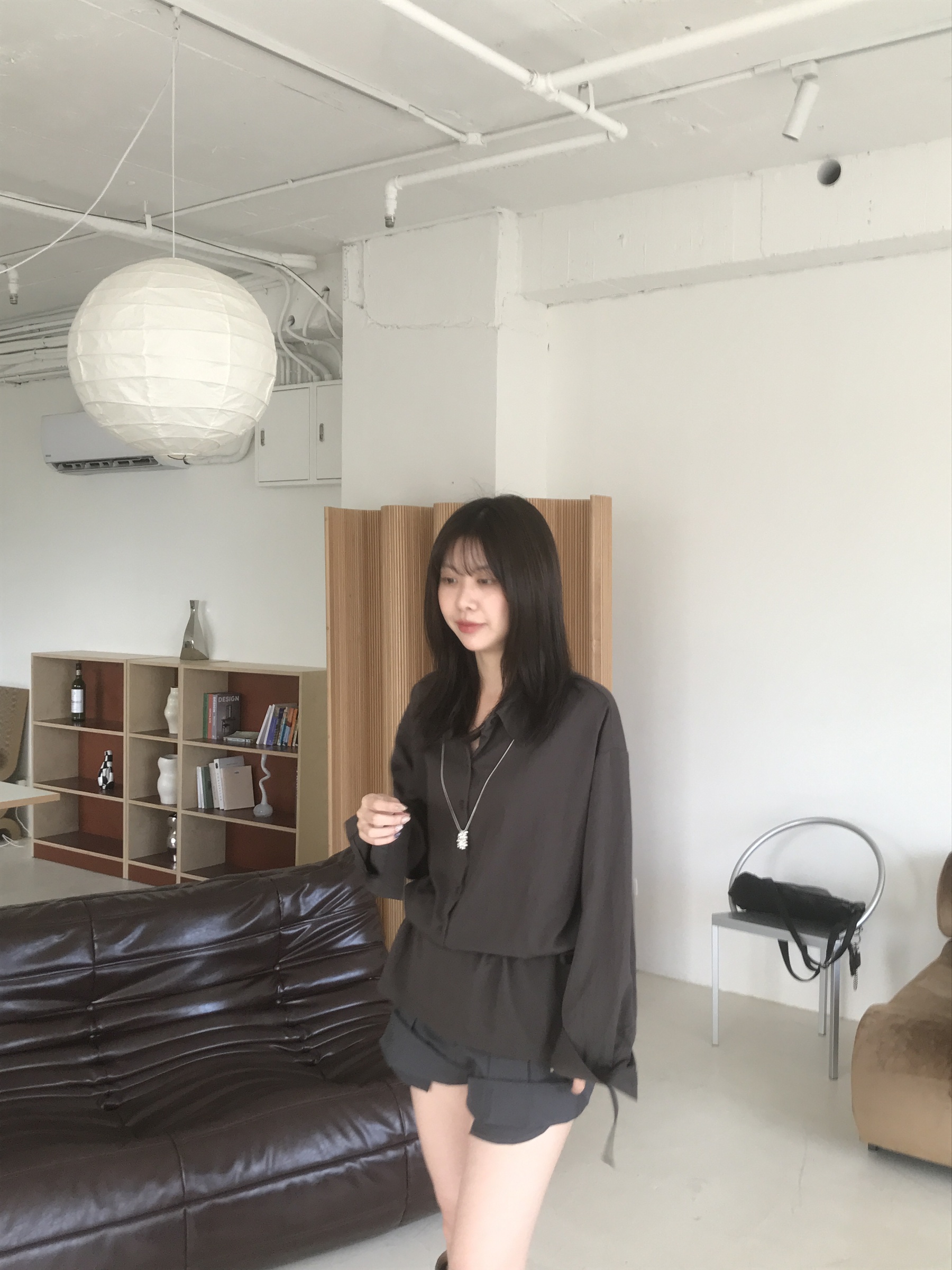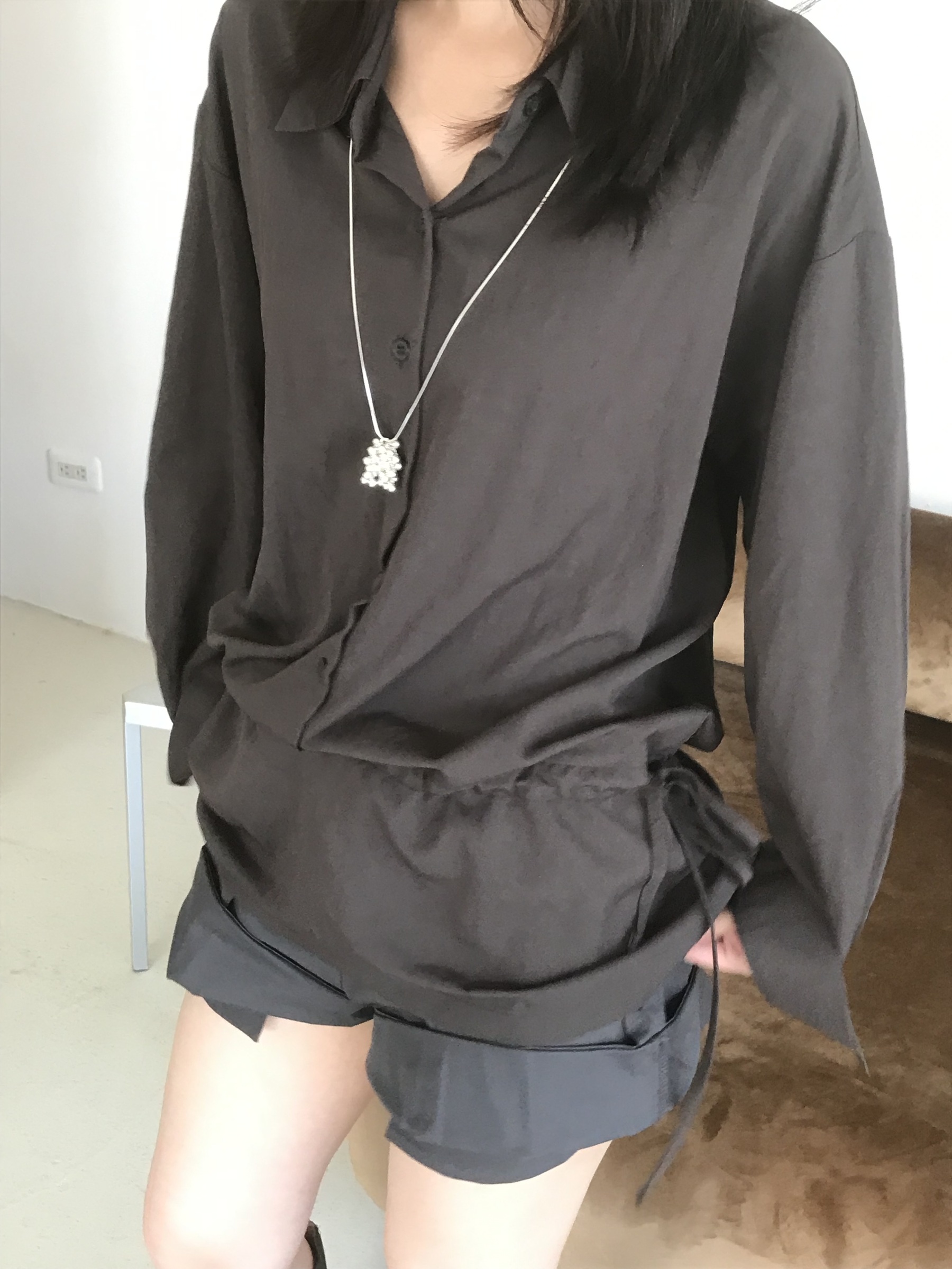 貝利開領抽繩襯衫 (酪白/霧灰)