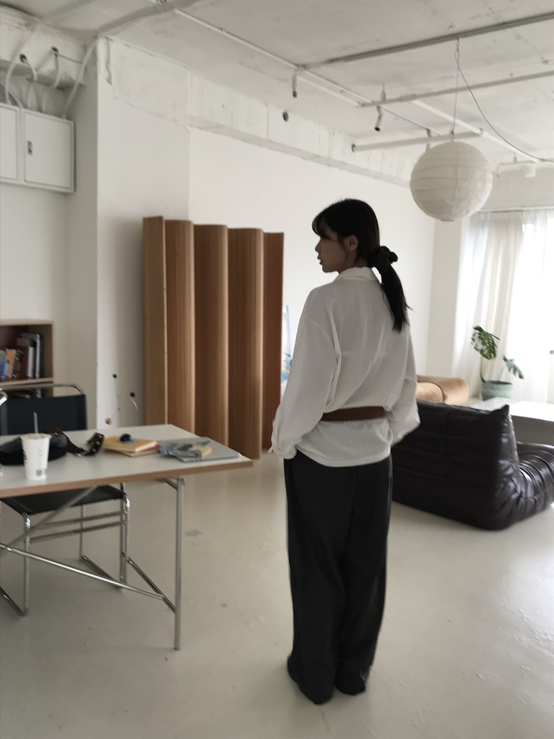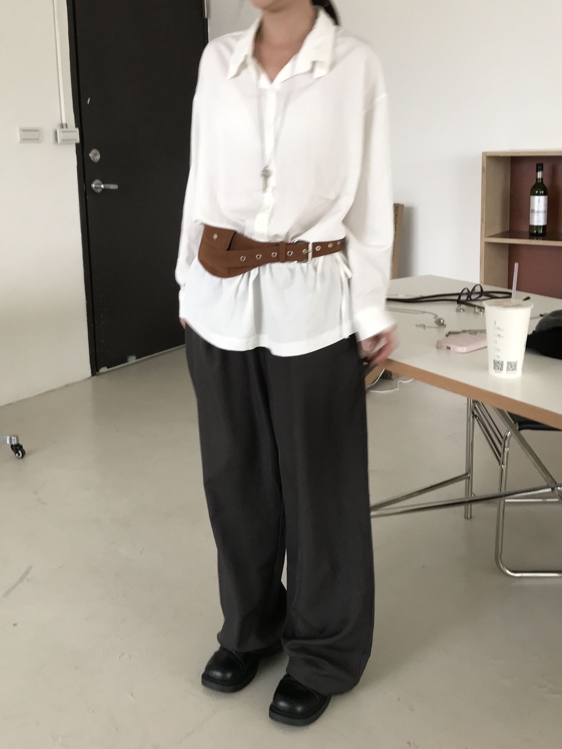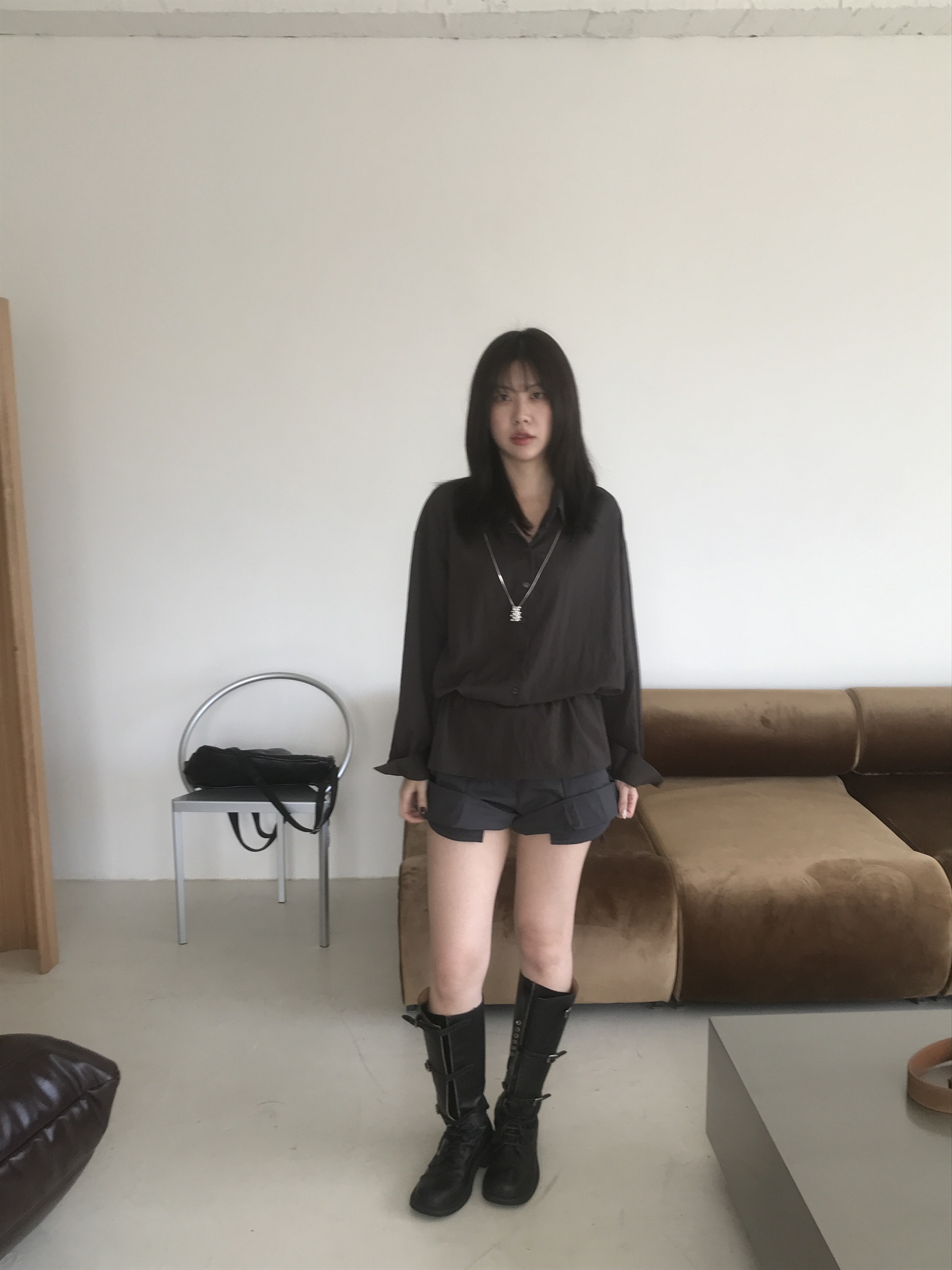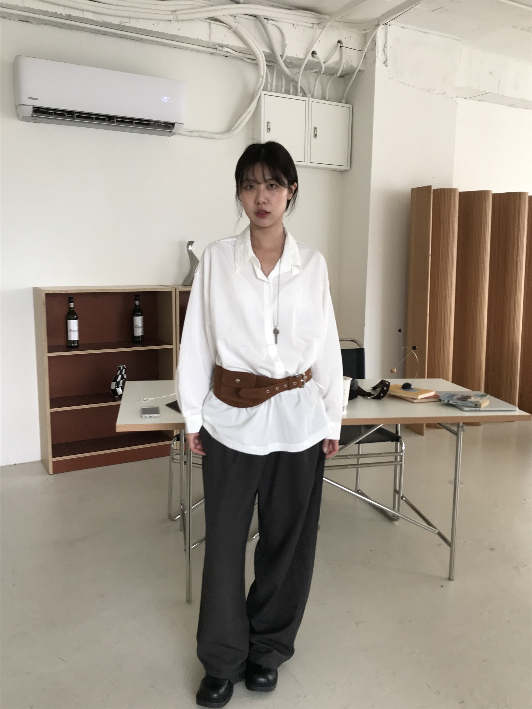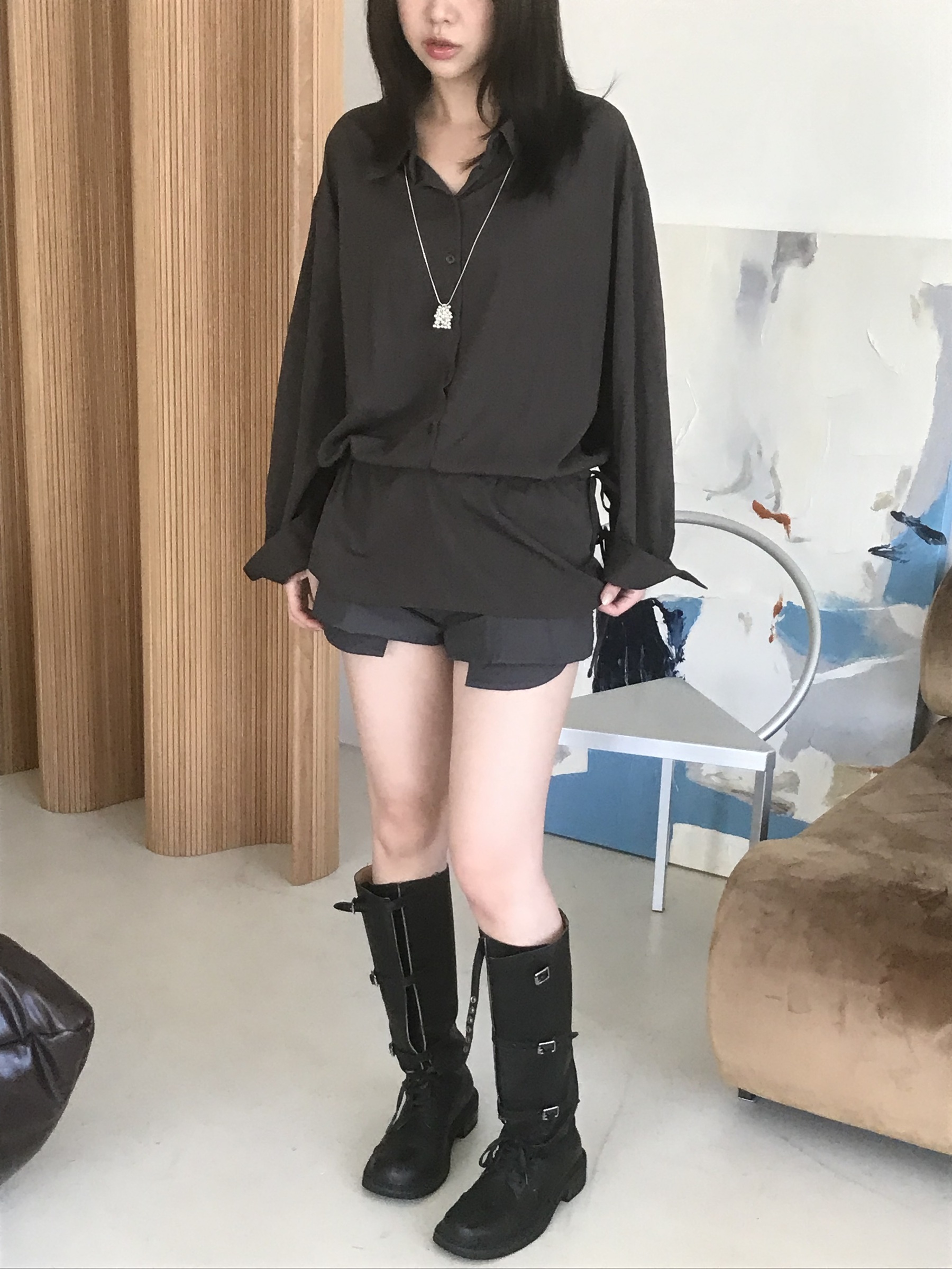 貝利開領抽繩襯衫 (酪白/霧灰)