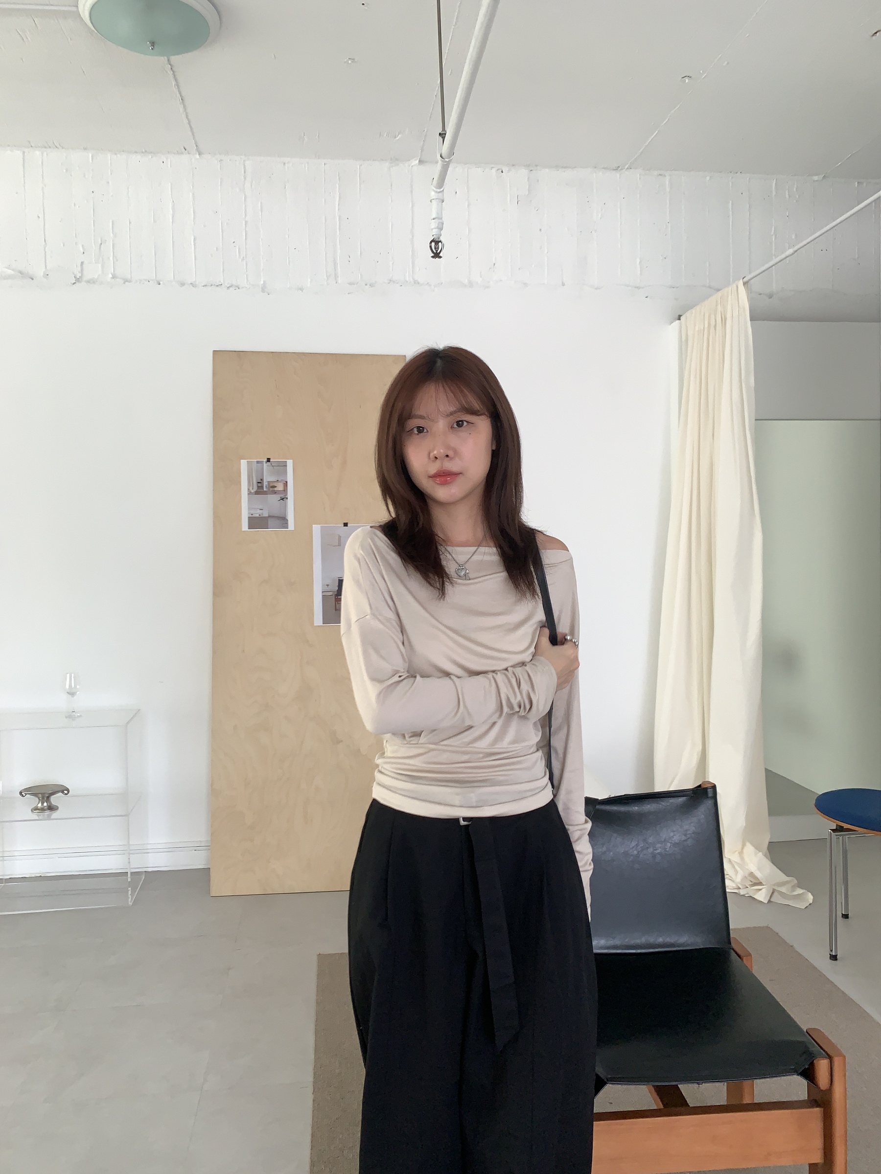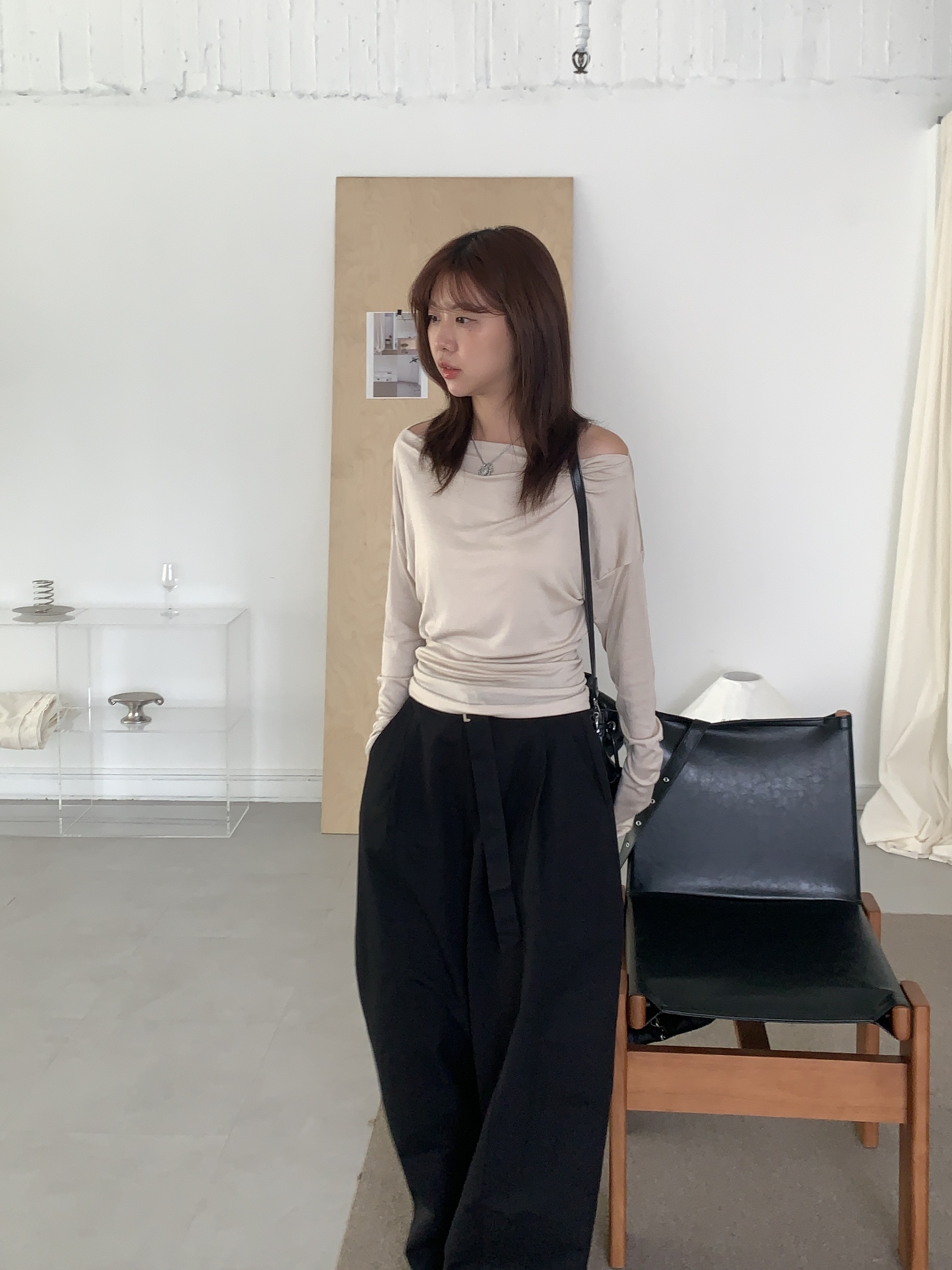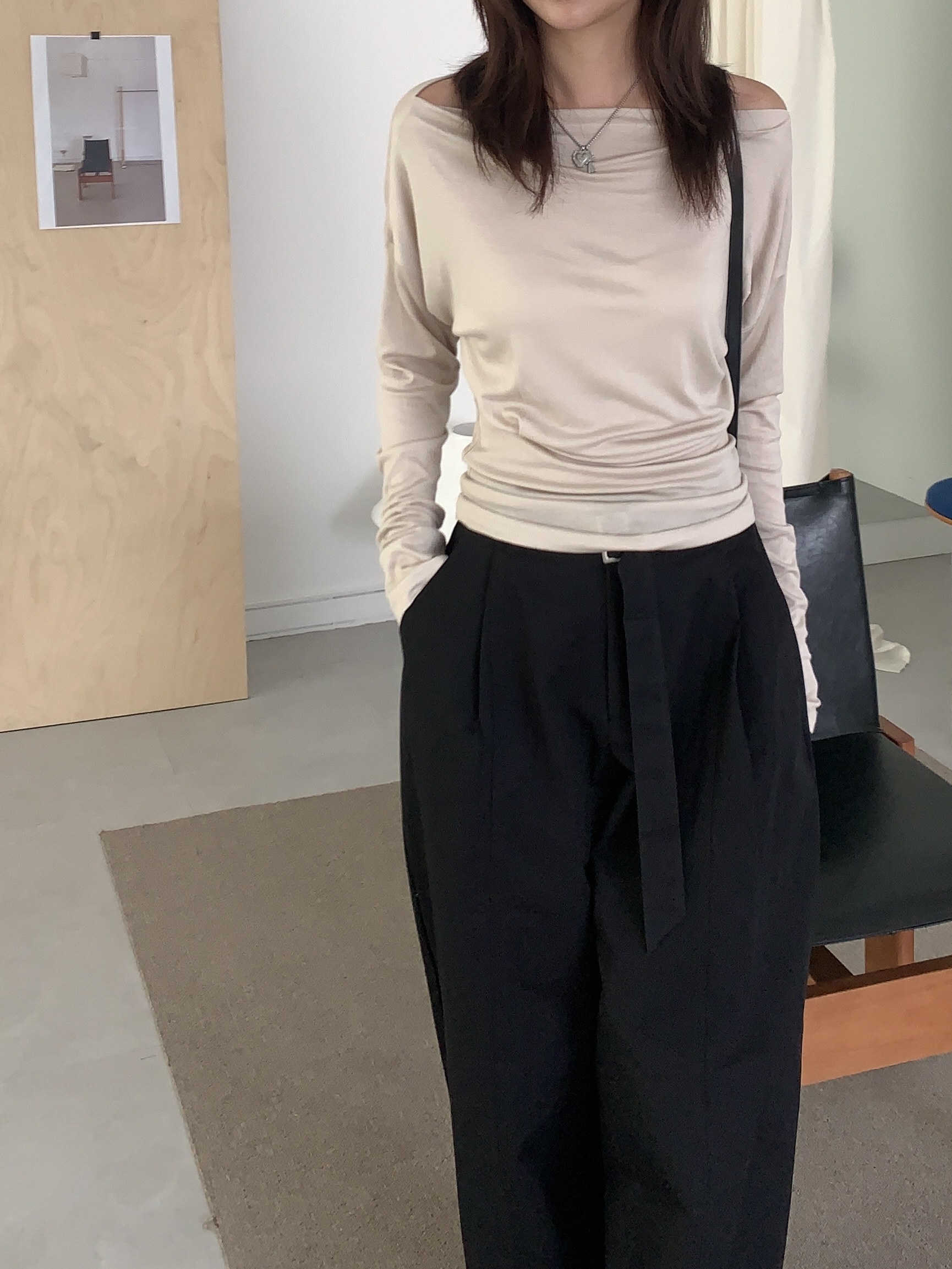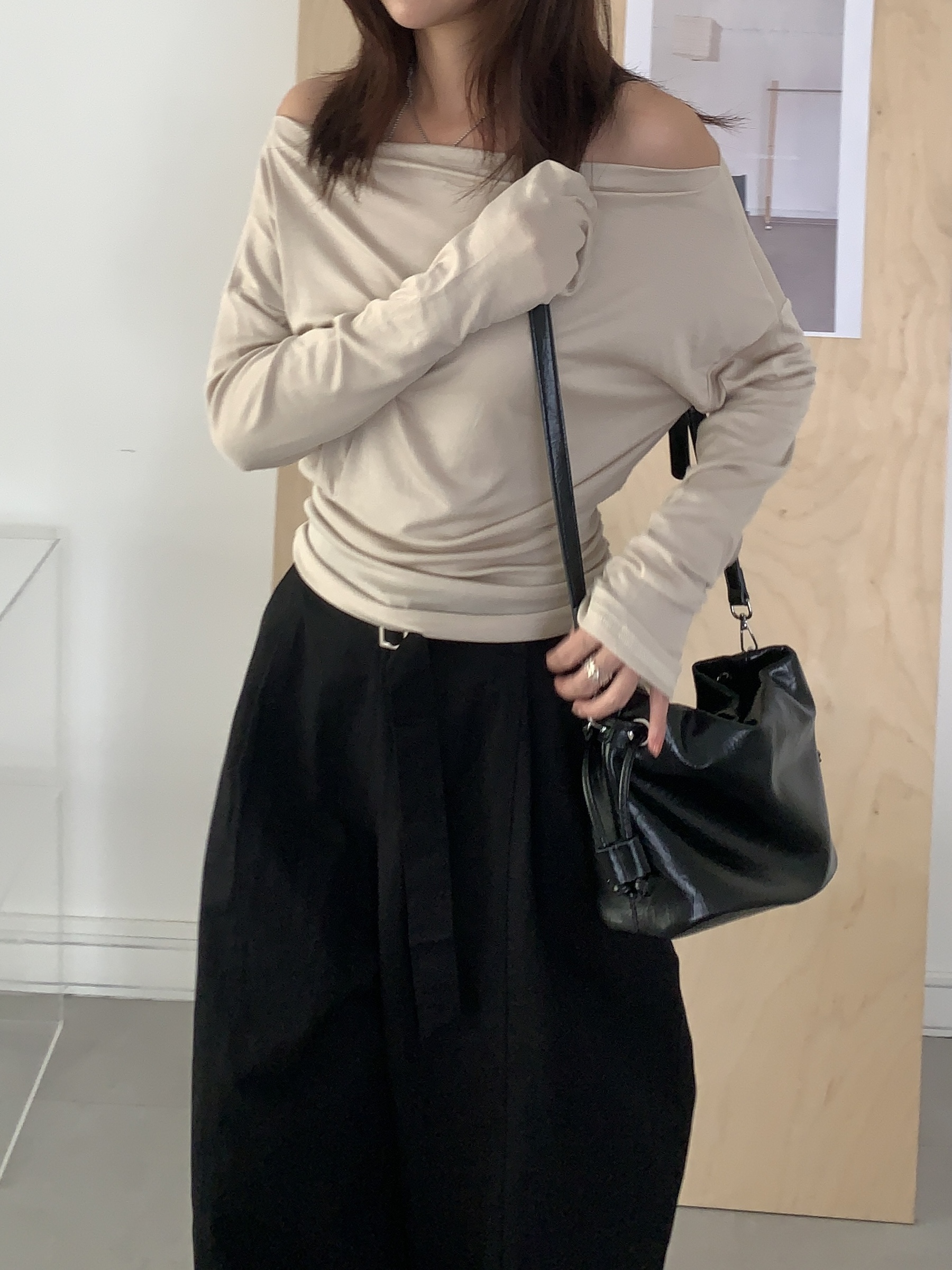 基礎斜肩一字領上衣 (one color)