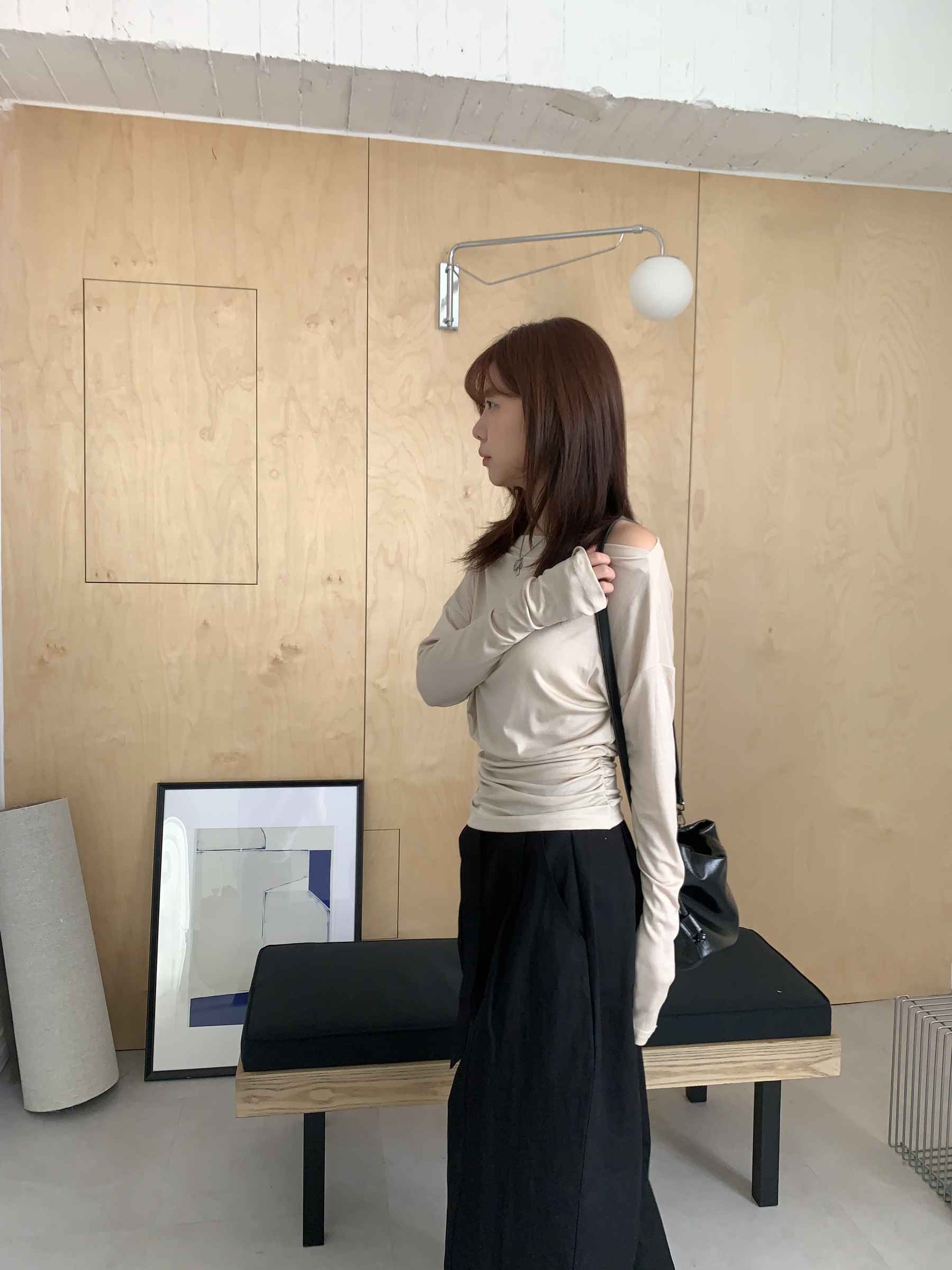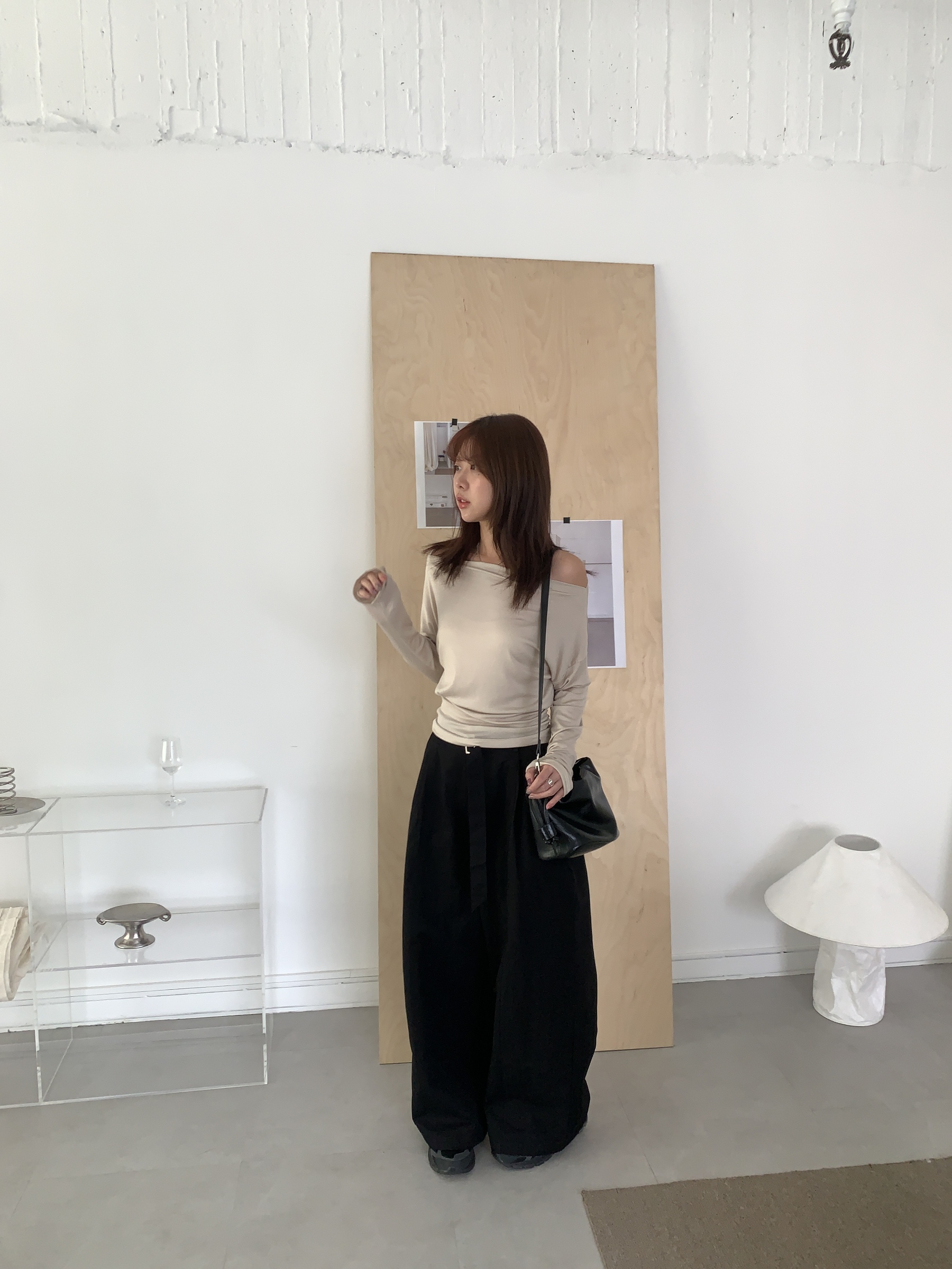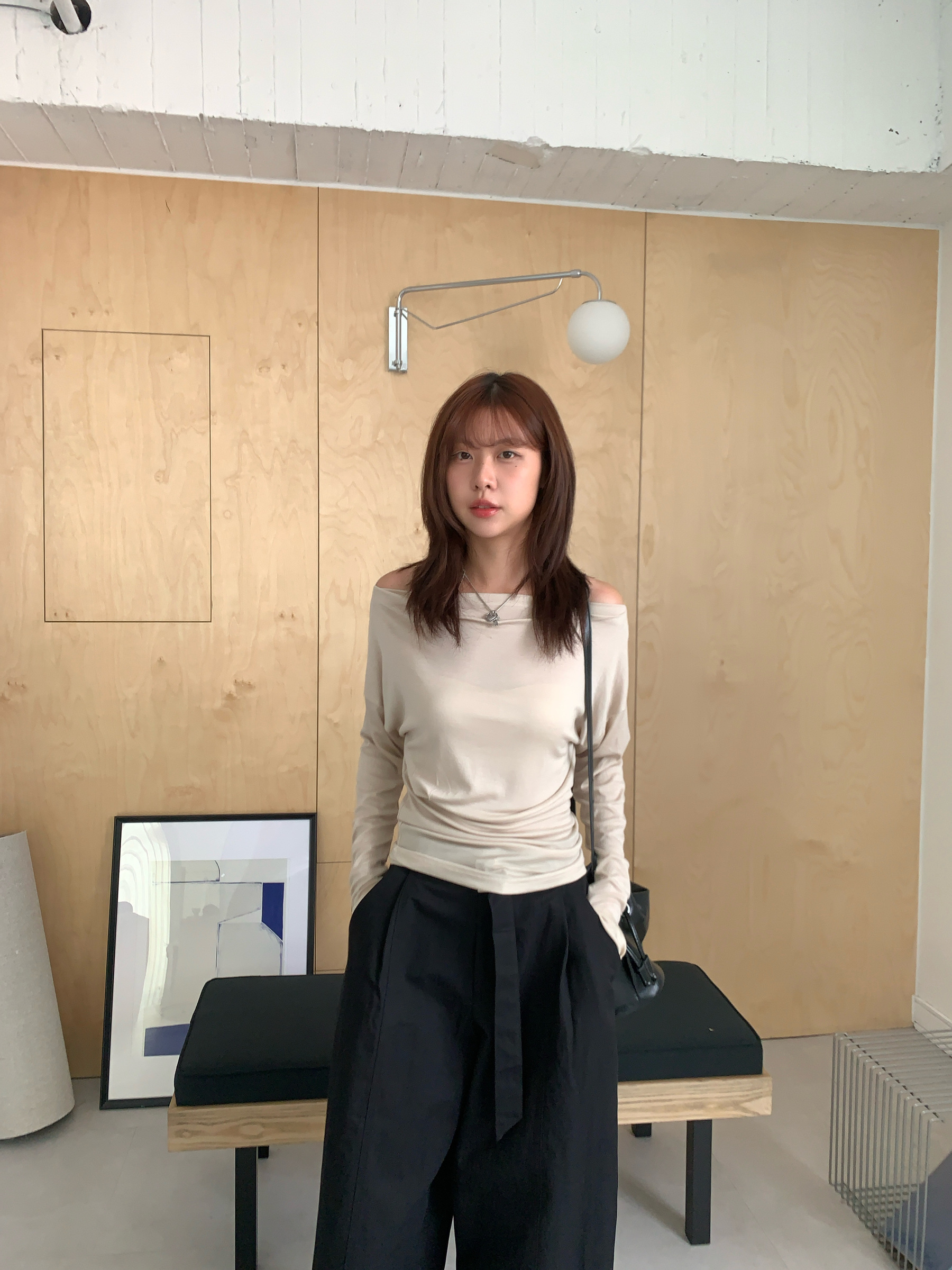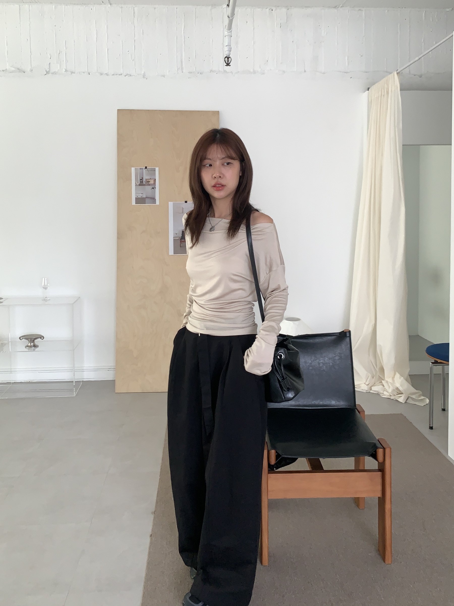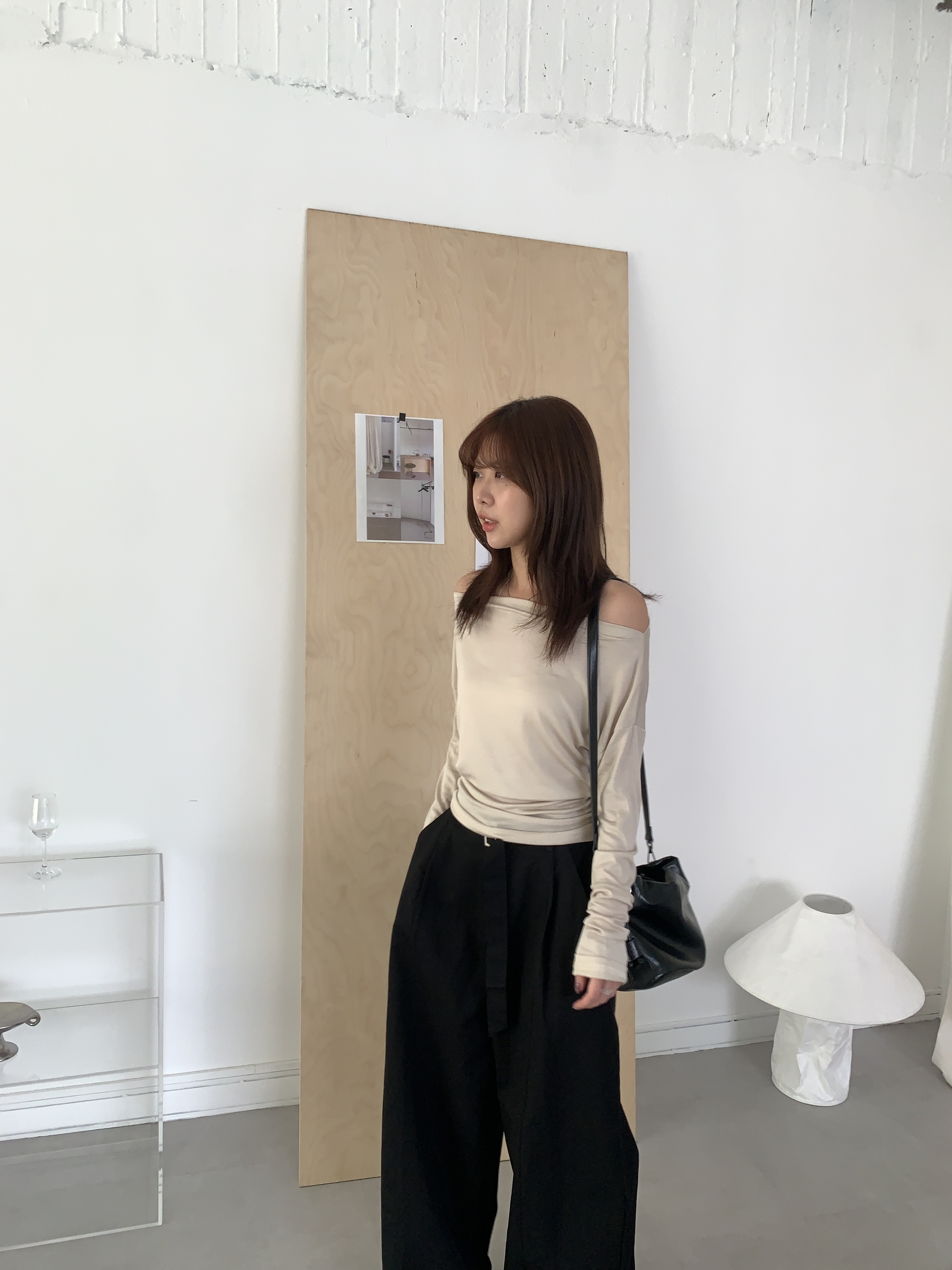 基礎斜肩一字領上衣 (one color)