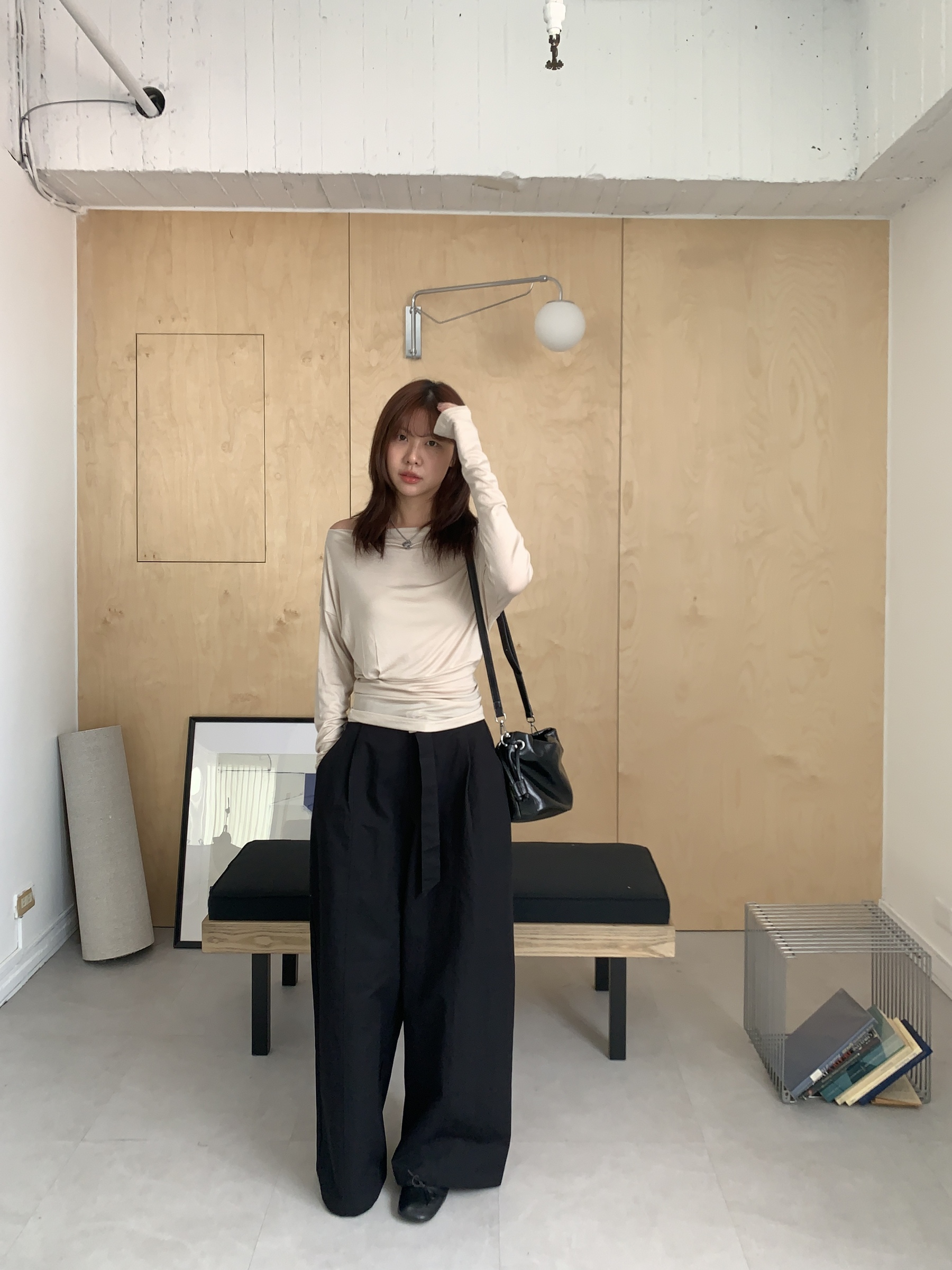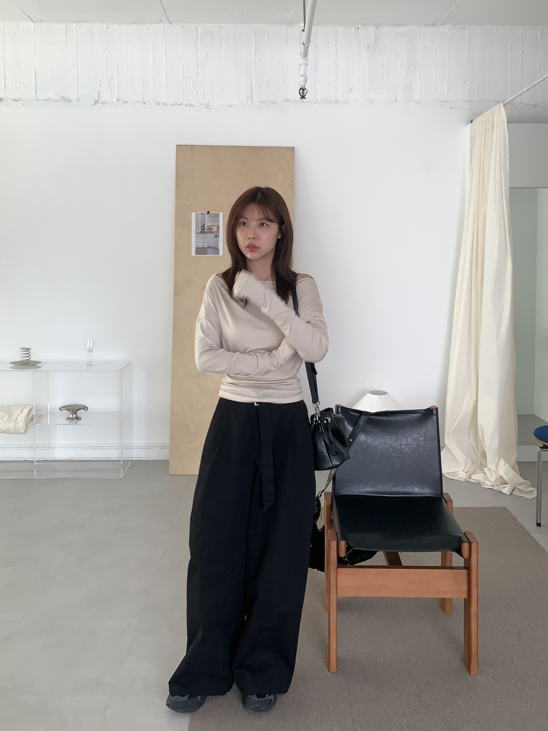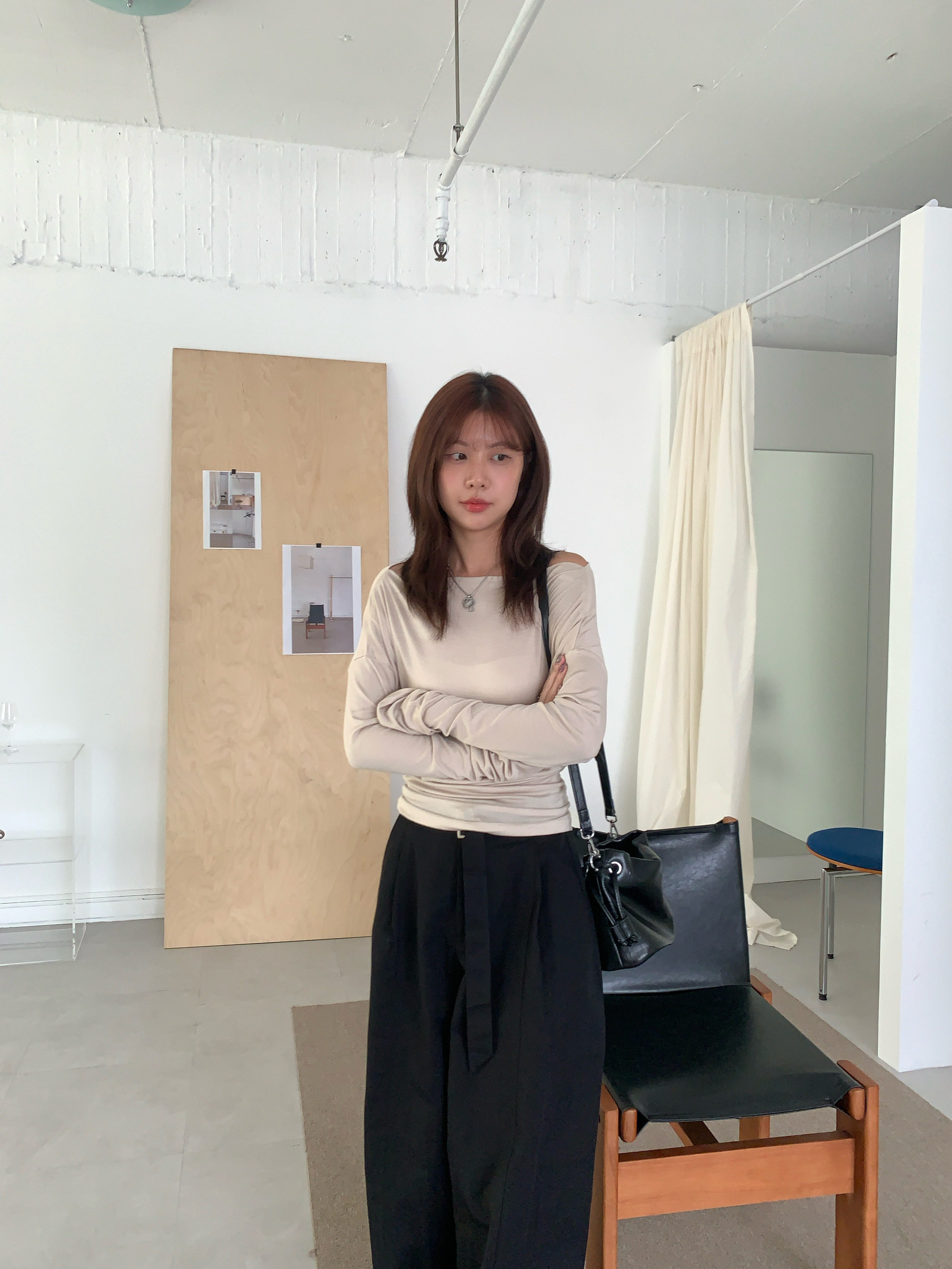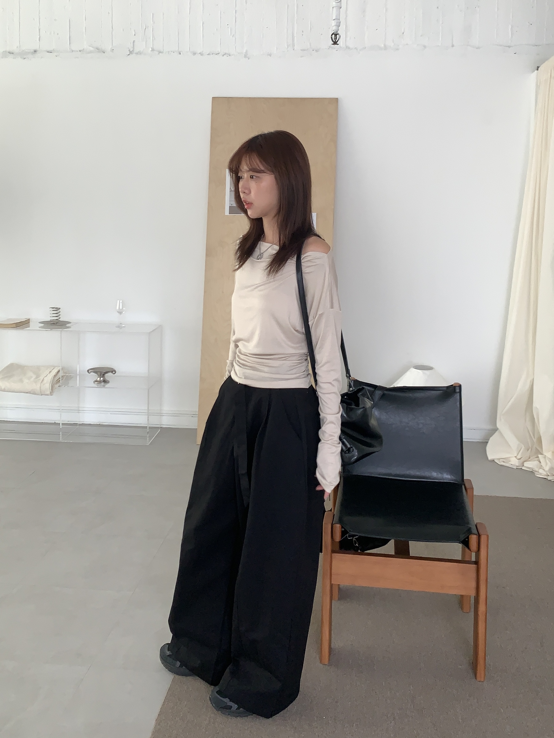基礎斜肩一字領上衣 (one color)