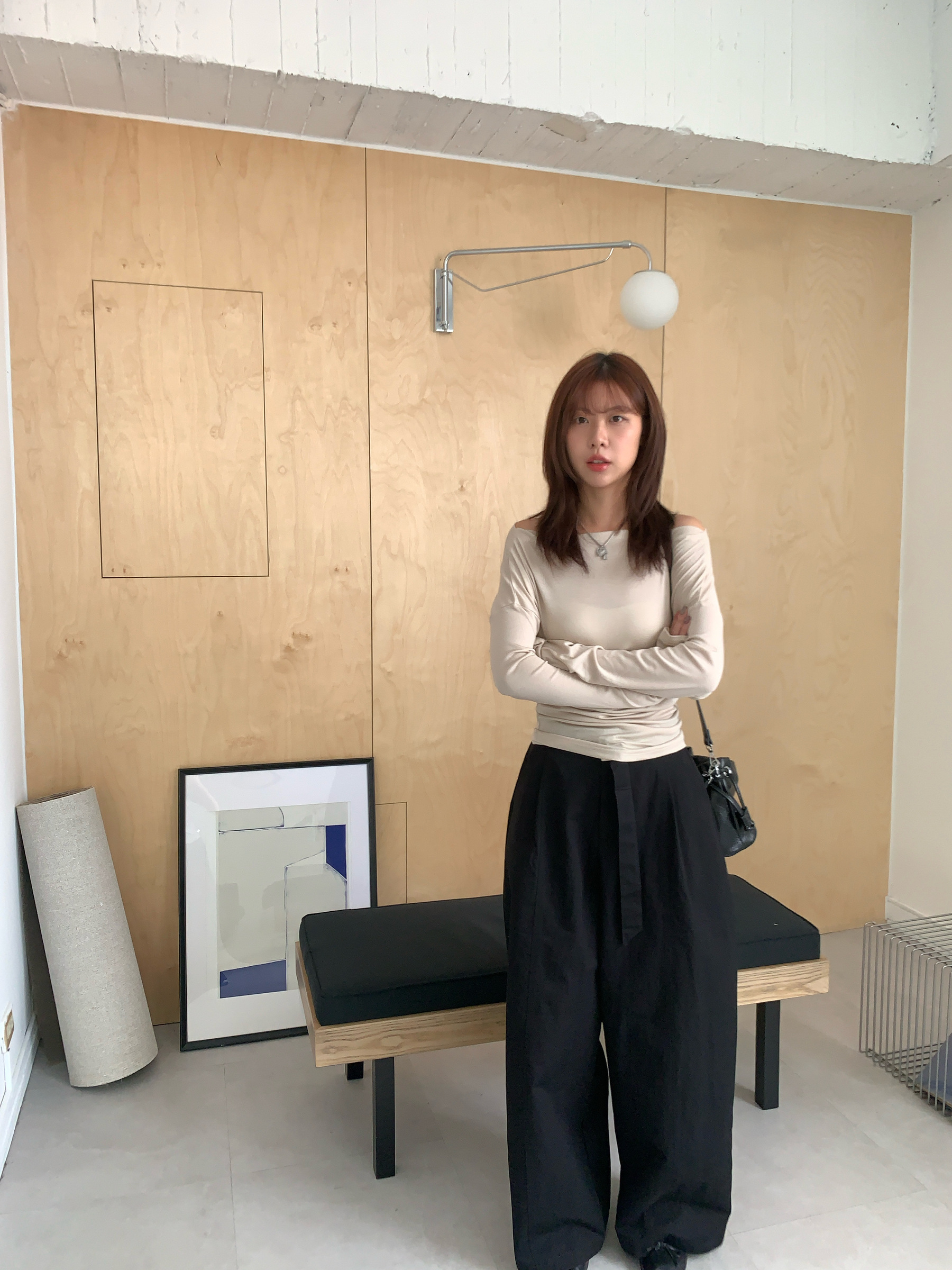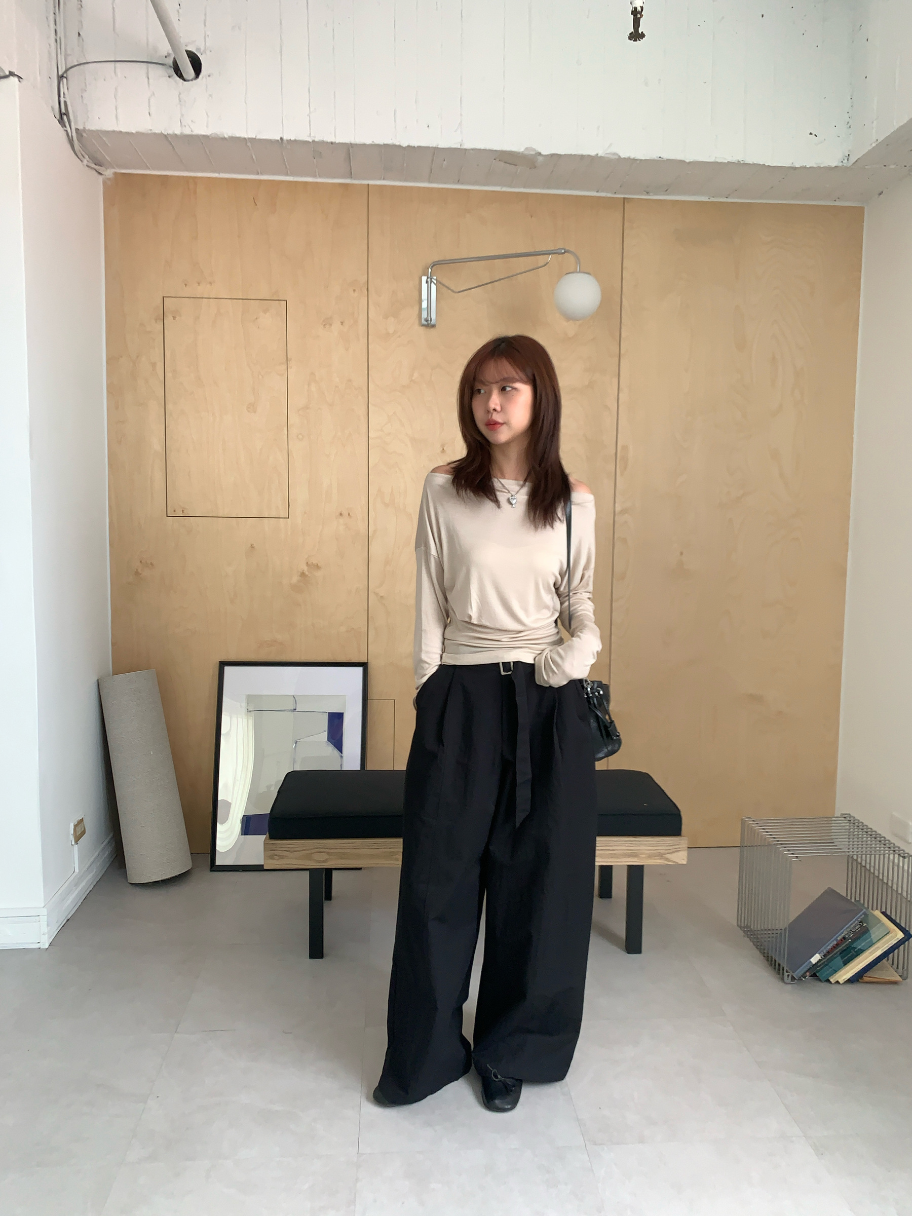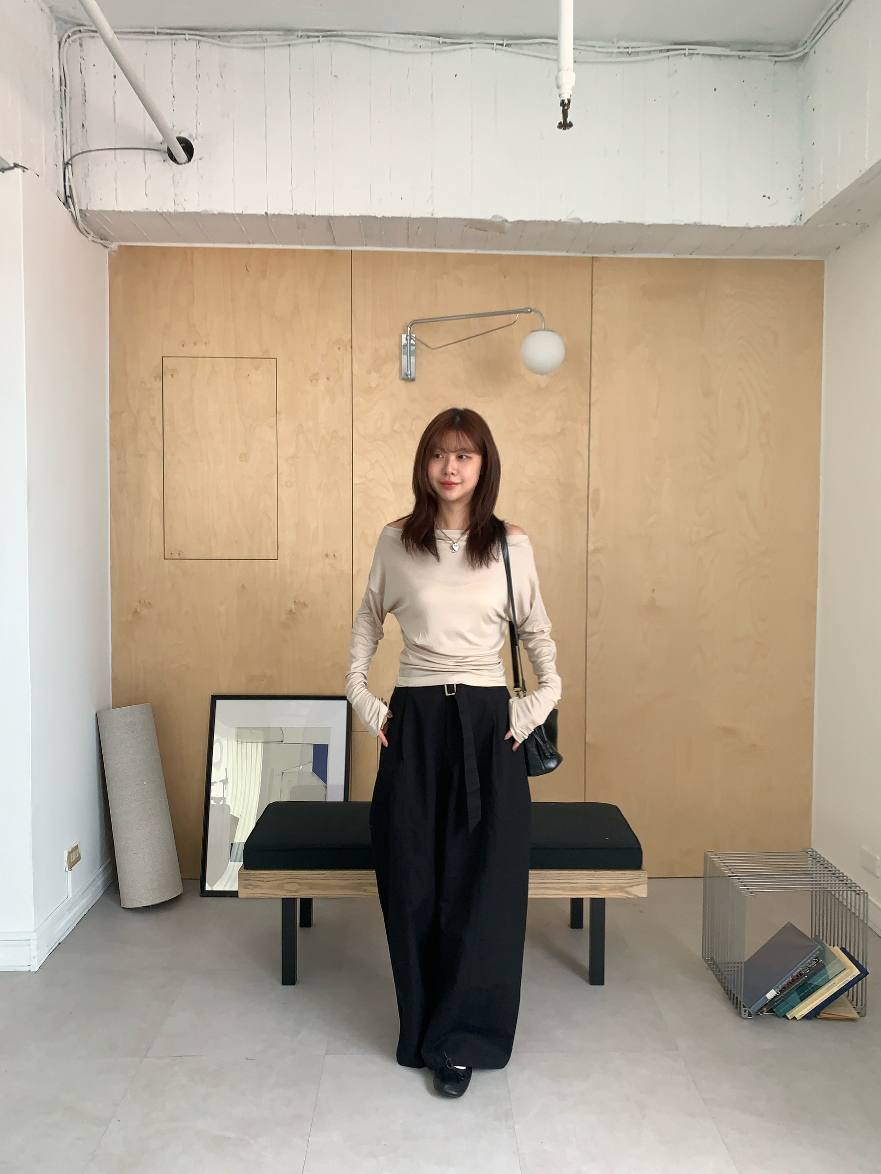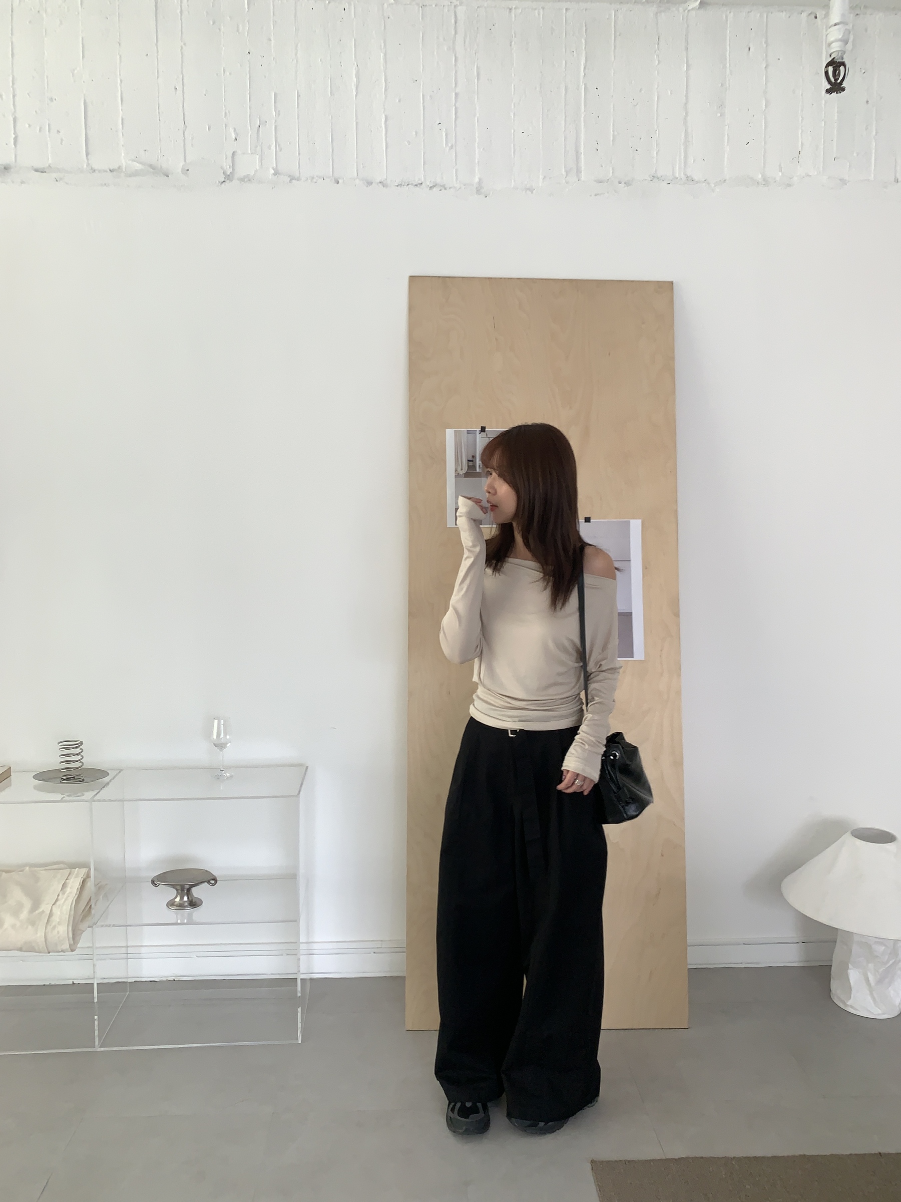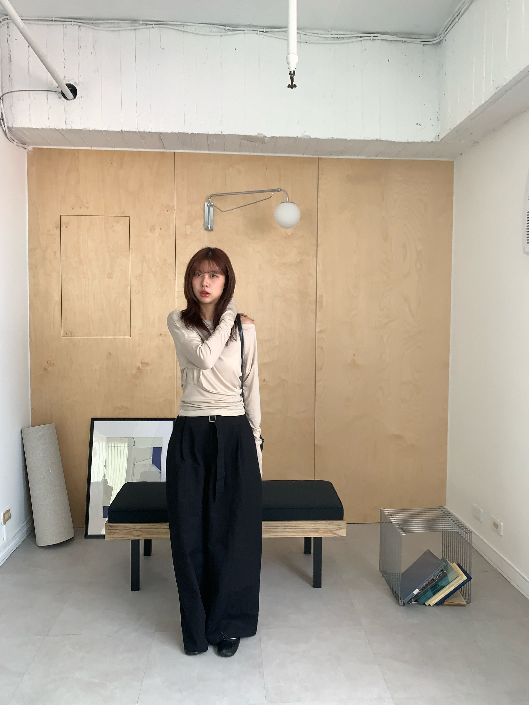 基礎斜肩一字領上衣 (one color)